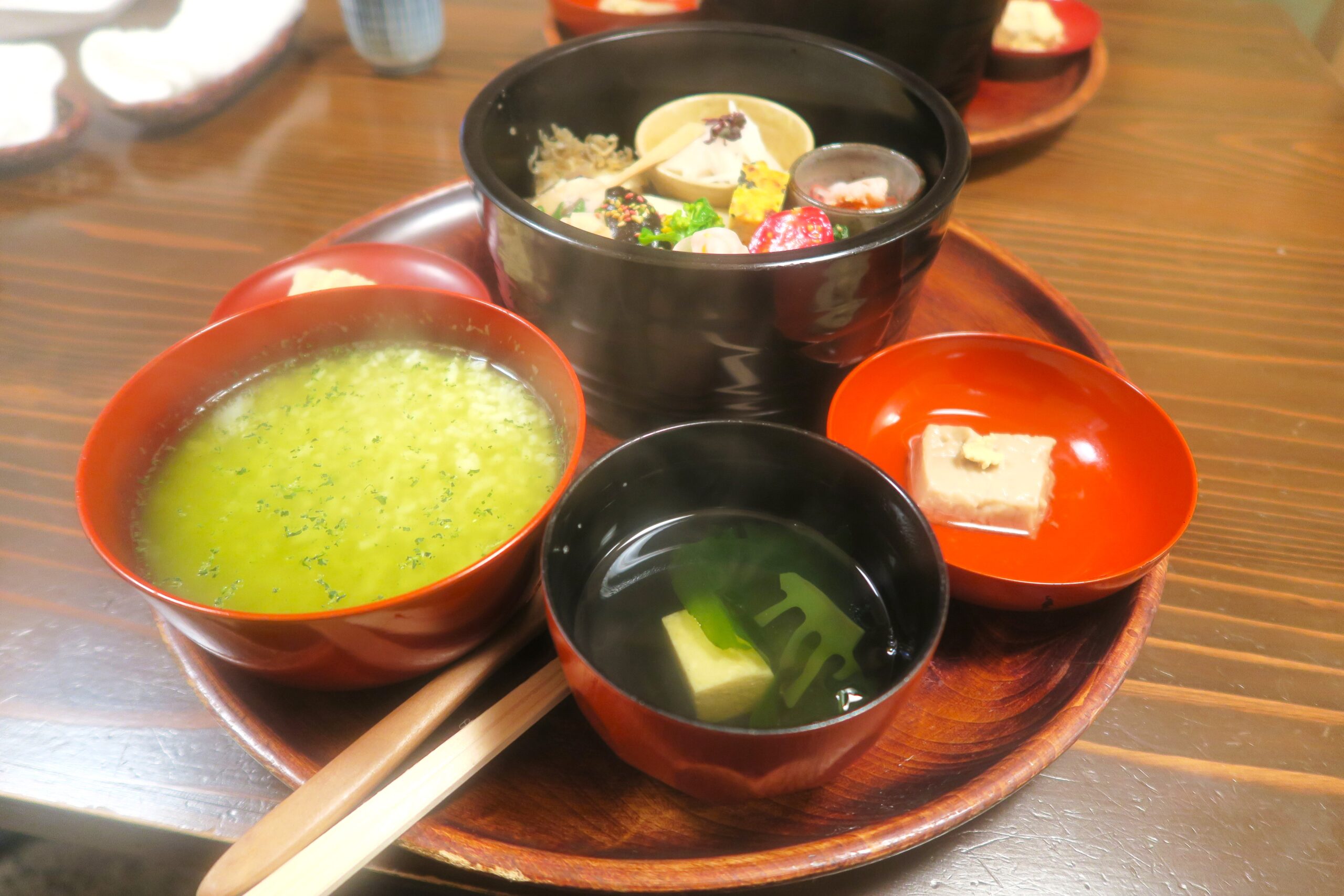椀物や麦縄つけめんと食後にデザートがついています。
