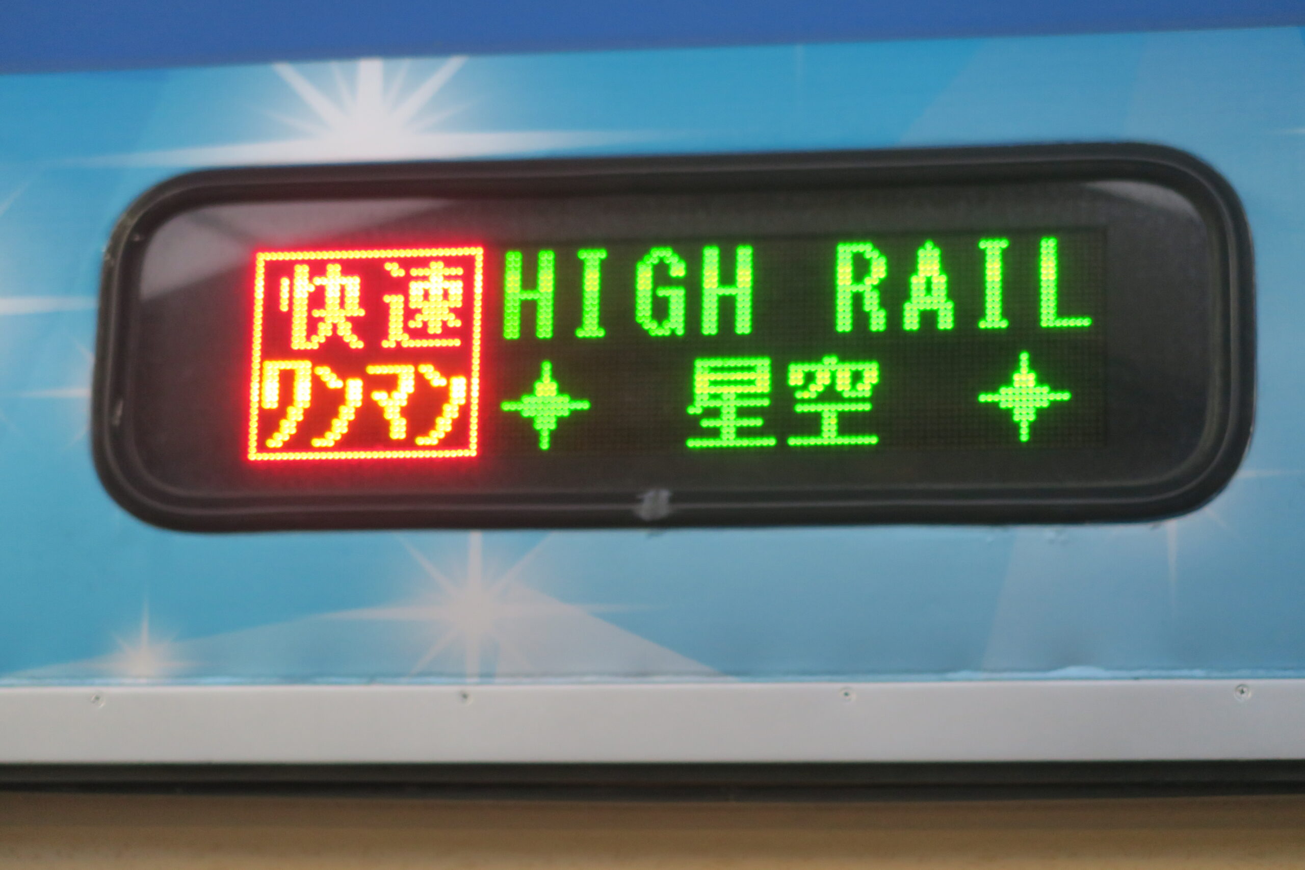 10月~11月土日の小淵沢駅18:12発、12月~3月土日の小淵沢駅17:09発の列車は、高原鉄道の夜を走る星空列車「HIGH RAIL 星空」となります。野辺山駅の停車時間中に、小海線沿線の星空案内人による星空観察会を行っています。星空観察会は、参加は自由ですが乗車員全員参加できますよ。