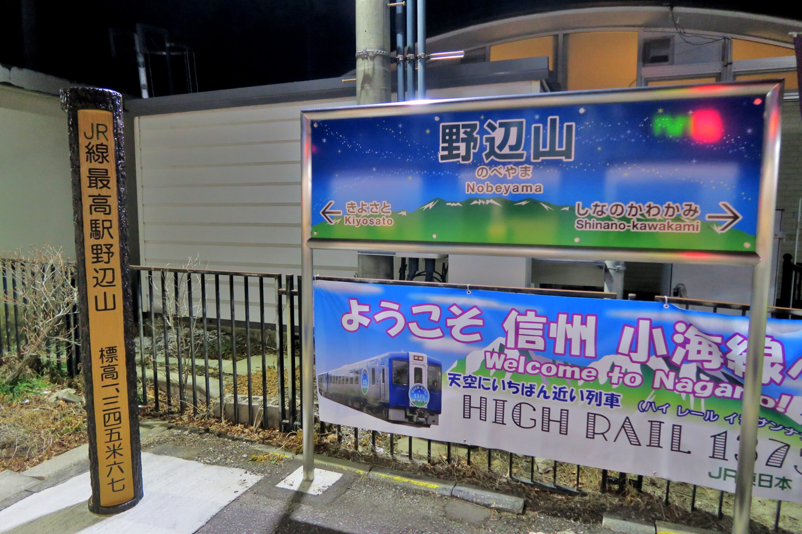 野辺山駅での停車中に辺りが完全に暗くなり、ここから列車は闇夜を走り20:14小諸駅に到着し、今回の小海線「HIGH RAIL 星空」の旅も終了です。