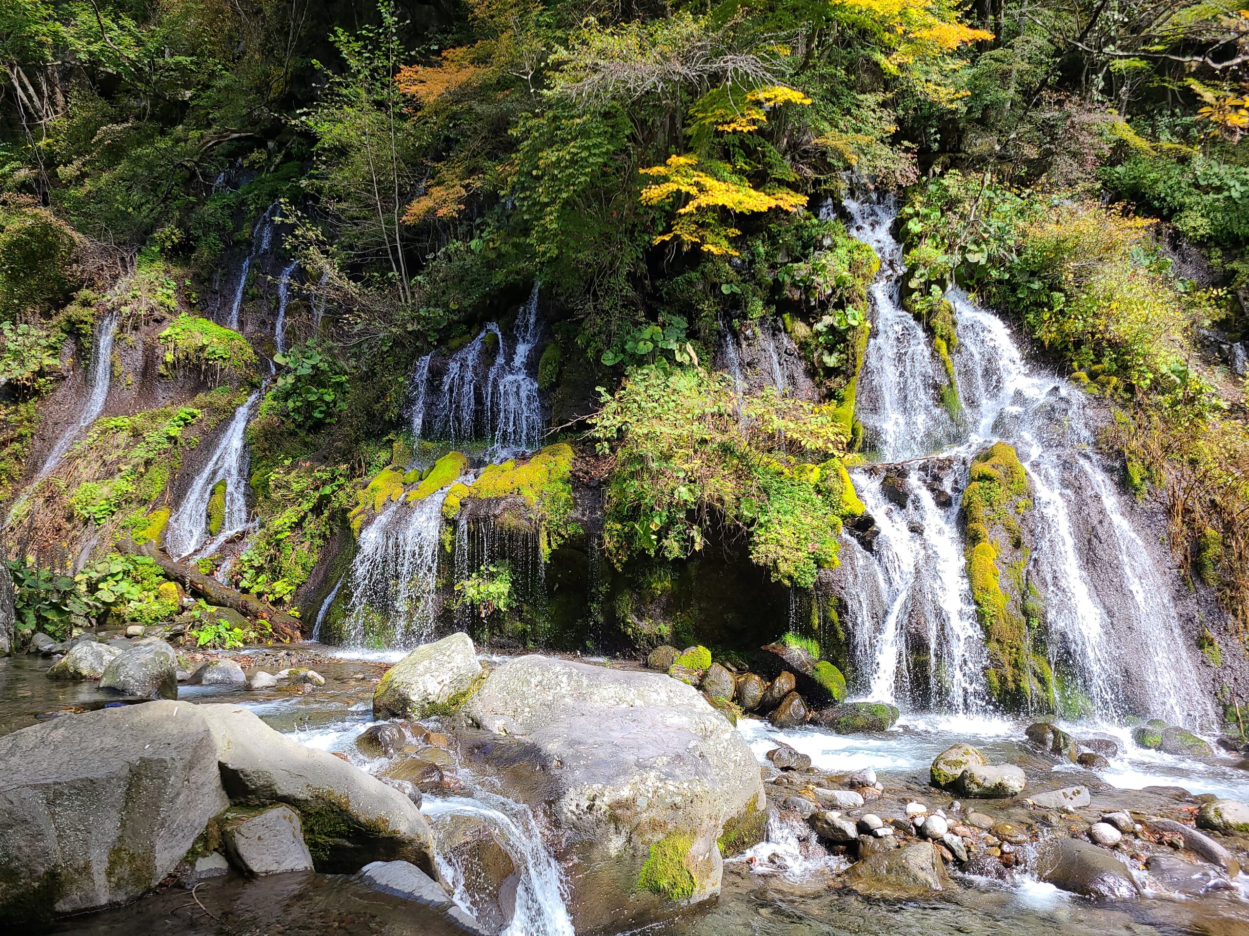 国定公園・八ヶ岳の入口でもある甲斐小泉駅を過ぎると山里風情はまっきり減り、鬱蒼とした緑の中を煙を吐き、汽笛を鳴らしてくねくねと進んでいきます。小海線唯一のトンネルを抜けると、谷間に差し掛かる。真下にはせせらぎが流れ、目を凝らせばその先左側には木々の間に岩肌を滑り落ちる吐竜の滝が白い飛沫を上げています。やがて緑に埋もれるように小粋な別荘が見えだすと清里です。吐竜の滝へは途中まで車やバスで行けます。                                          八ヶ岳の清泉と渓谷美を歩く山梨県清里「川俣川東沢渓谷」はこちらhttps://wakuwakutrip.com/archives/8986