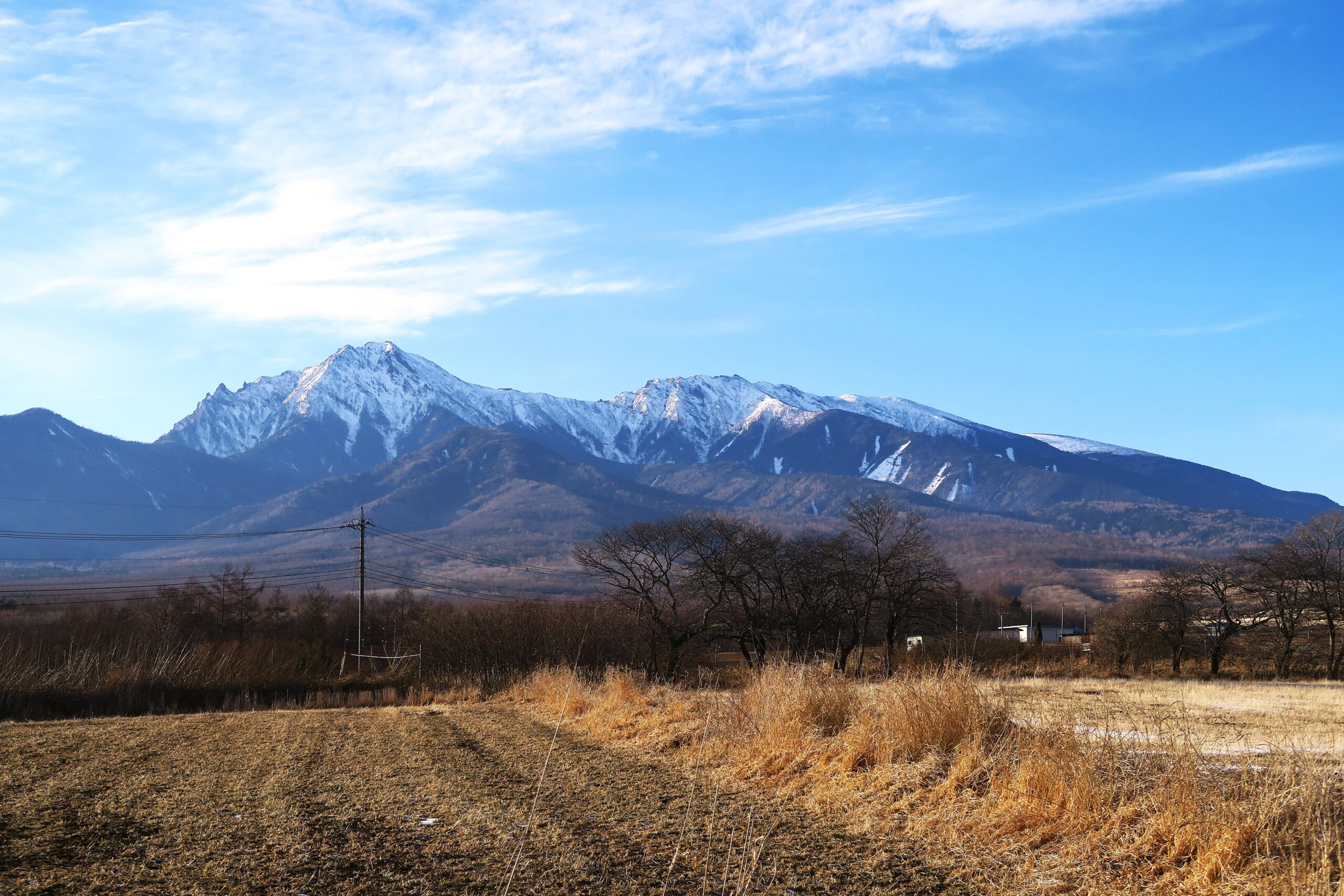 駅前にはさすがに土産物店や住宅が建ち並んでいるものの、駅前には広々とした銀河公園、少し歩けば野辺山らしい高原の景色が広がっています。夏になればだだっ広い高原にはレタスや白菜、大根、キャベツなど、旬の高原野菜がびっしりと並び、畑の中でポツンと立つヤマナシの樹が絵画のような美しさです。その果てにはいつも悠然とした八ヶ岳の山並みが天に向かってそびえ立つ。