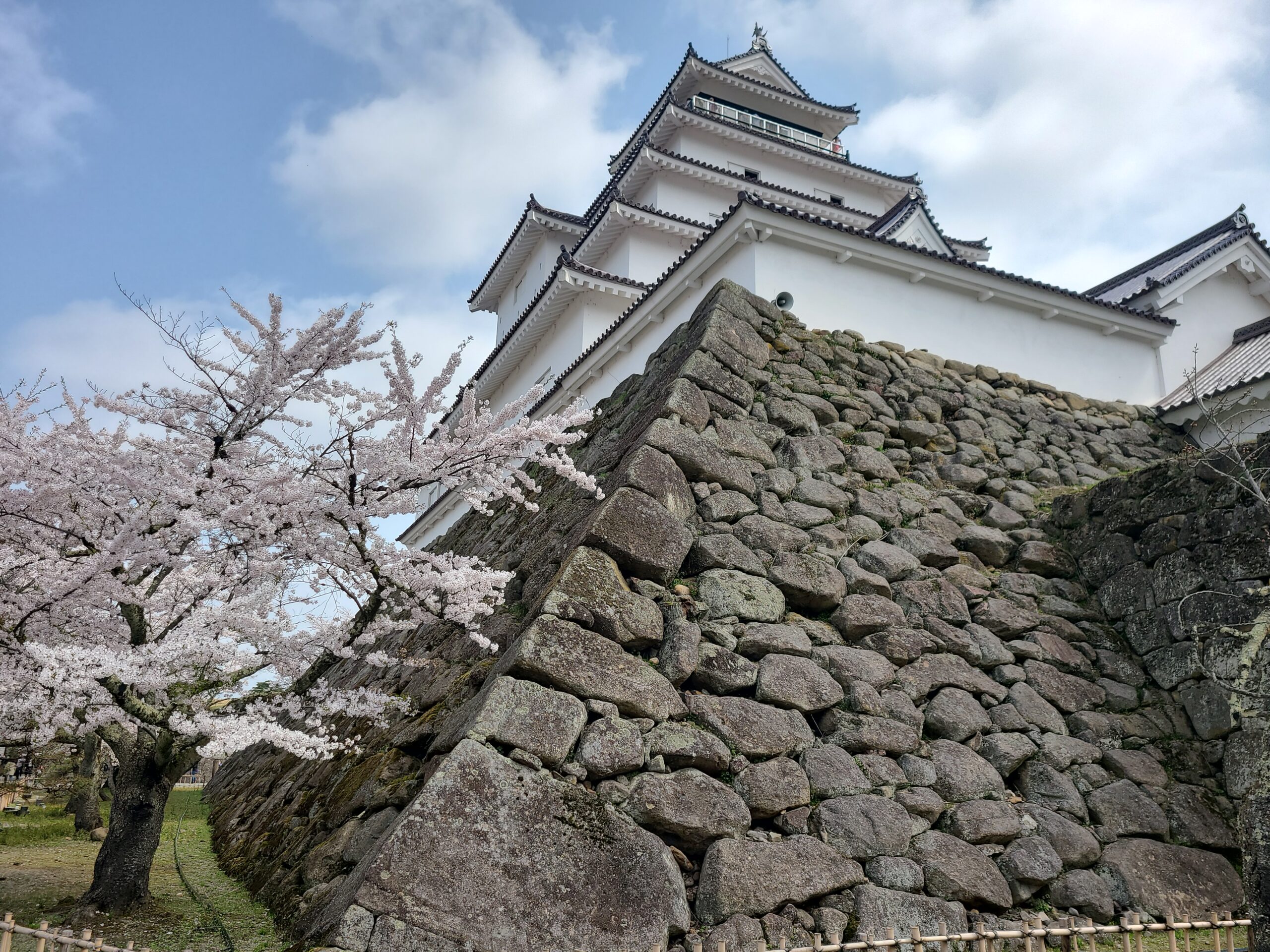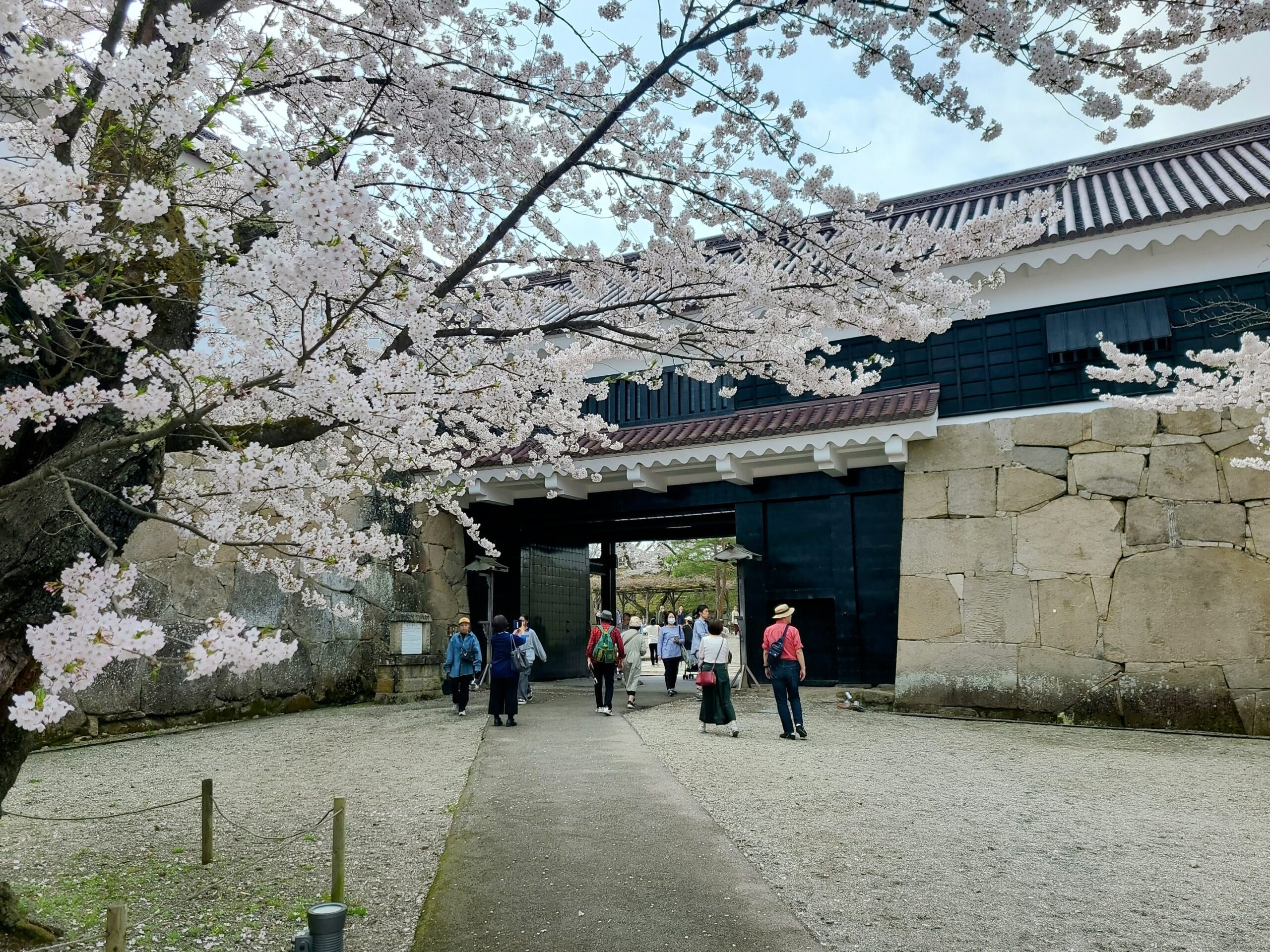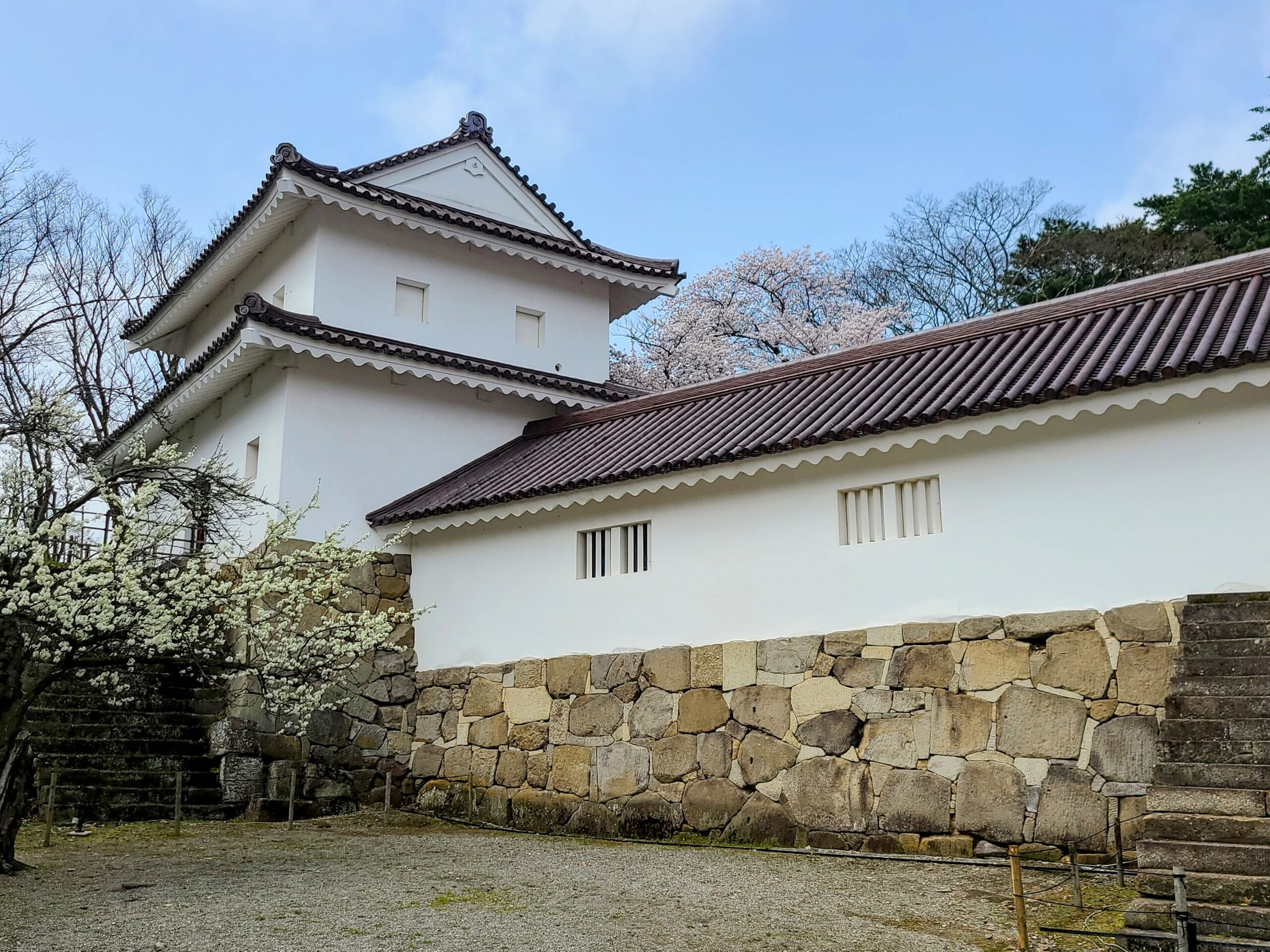 現在の天守は昭和40年(1965)の再建されたもので5重。元々の天守は7重で現在のものより少し大きかったため、今は天守が載った石垣と天守の裾が少しずれています。また天守台の野面積みとその横に繋がる長屋の打込接、切込接との対比も面白い。