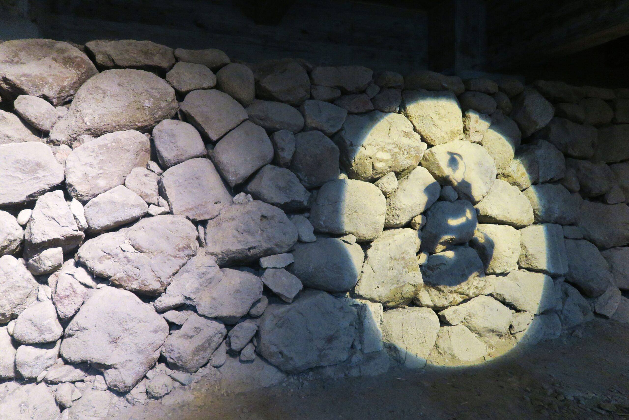 鶴ヶ城へは石垣をくり抜き地下倉庫から入城します。天守台の内部は年間を通して外部より気温が低いため塩蔵として用いられた場所で、間近で見る石垣は圧巻です。若松城の天守台は約400年前の蒲生氏郷が天守閣を建てたときに築かれたものですが、内側の石積みは慶長16年(1611)の大地震の時の被害により加藤時代に行われた改修の時に積み直されています。ここから1層から5層の展望層まで階段で上っていきます。