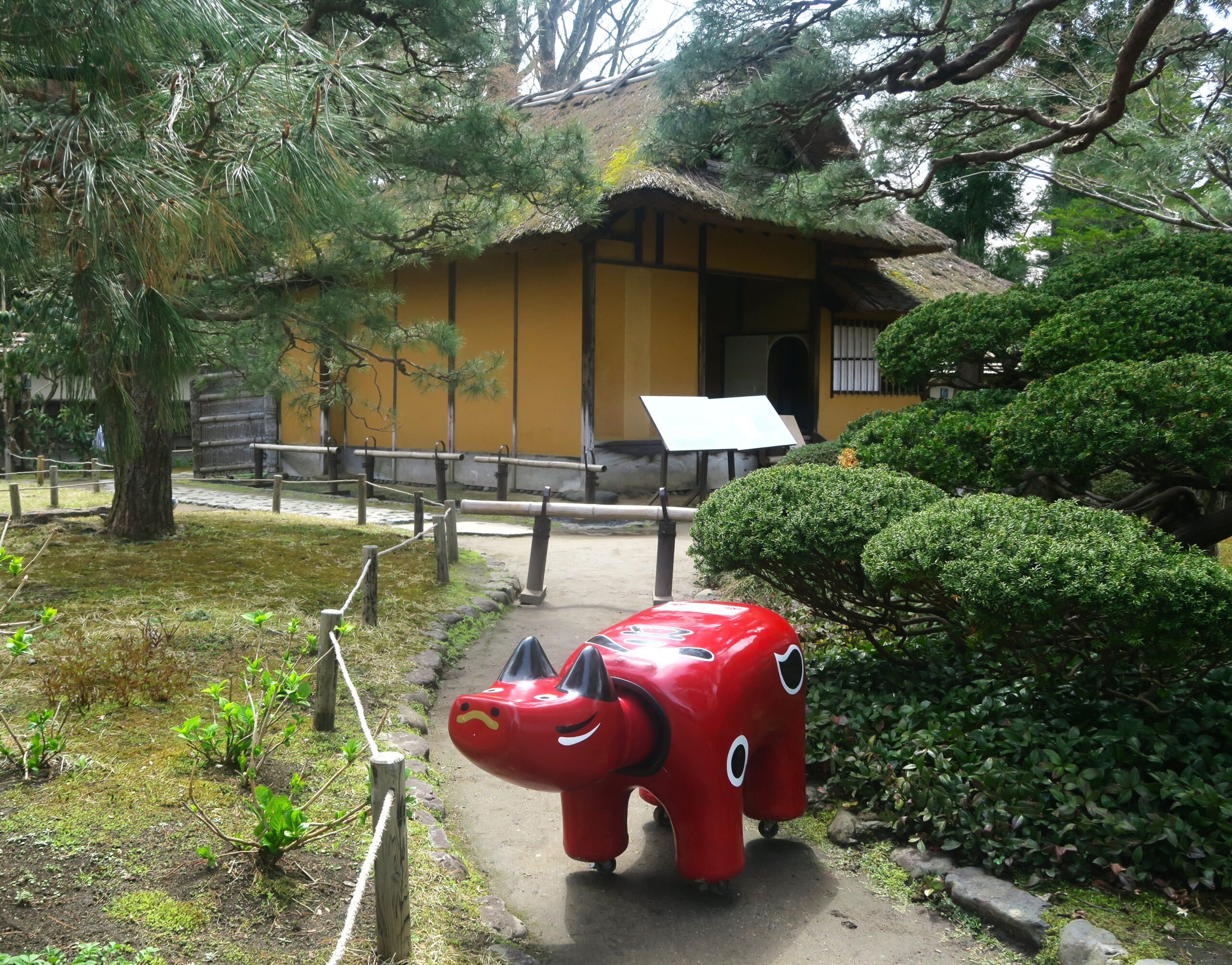 勇猛な蒲生氏郷は文化人でもありました。天正19年(1591)千利休が豊臣秀吉から切腹を命じられると、利休の茶道が途絶えることを惜しんだ氏郷は利休の子・少庵を会津に匿い、秀吉に『千家再興』を願いでました。この結果、少庵は京都に帰り今日の千家茶道の礎となり、千家茶道は少庵の子宗旦に引き継がれ、その孫により武者小路千家、表千家、裏千家の三千家が興され現在に伝えられています。城内本丸南東端にある茶室「隣閣」は、少庵が氏郷のために建てたと伝わり、戊辰戦争後は茶人森川善兵衛宅で大切に保存されてきました。平成2年に元の位置に移築復元されています。