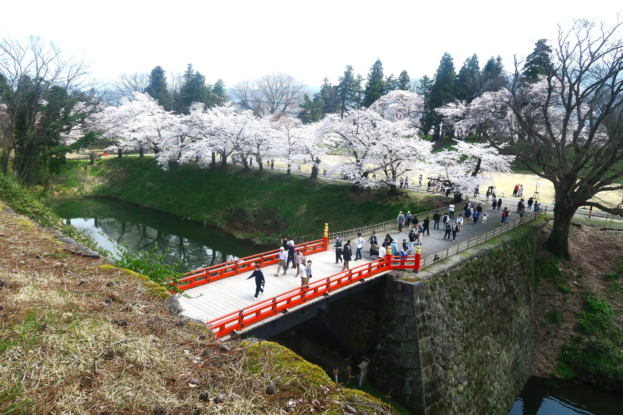 会津の盛衰を刻んだ歴史舞台。桜の海に浮かぶ白壁と赤瓦の鶴ヶ城