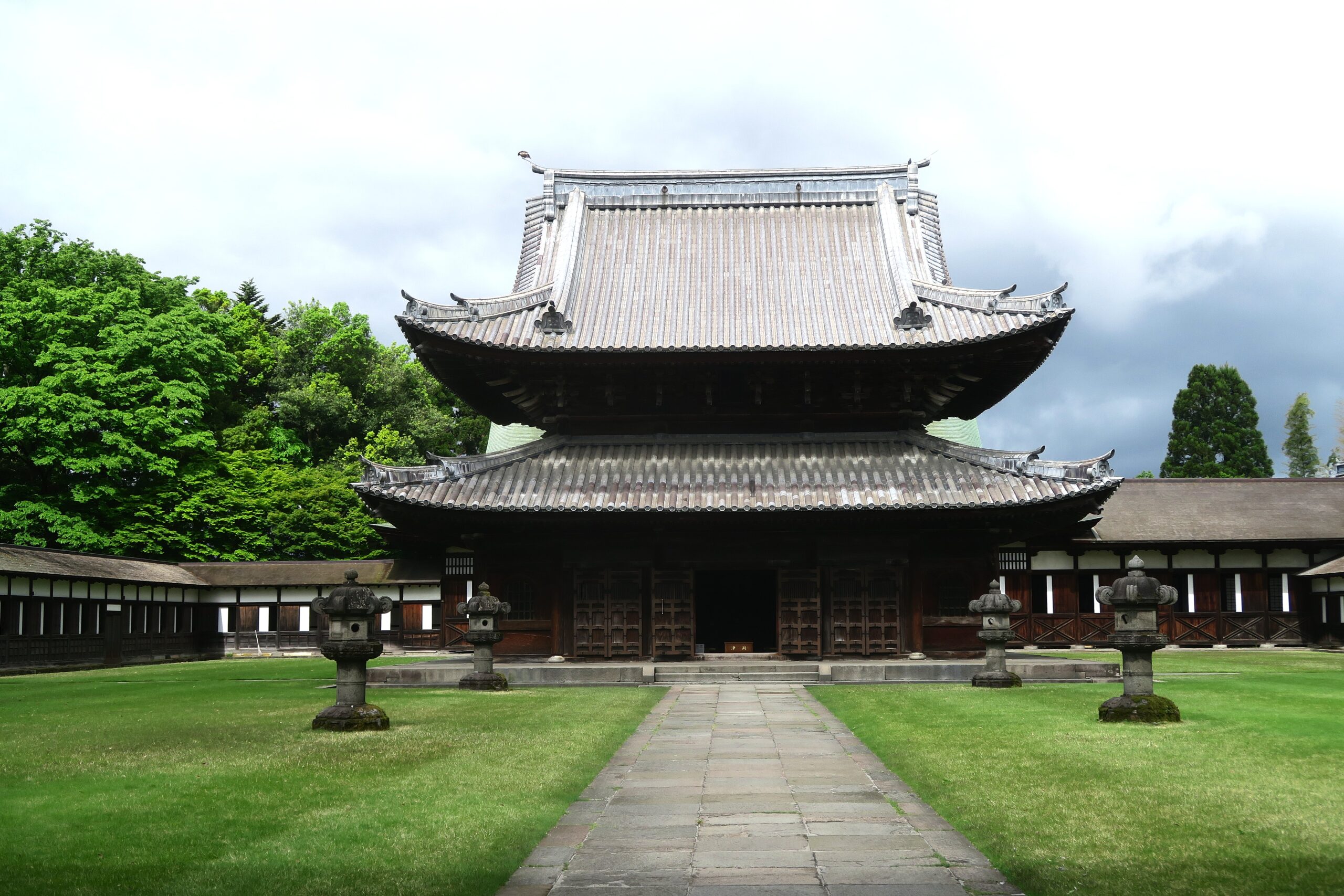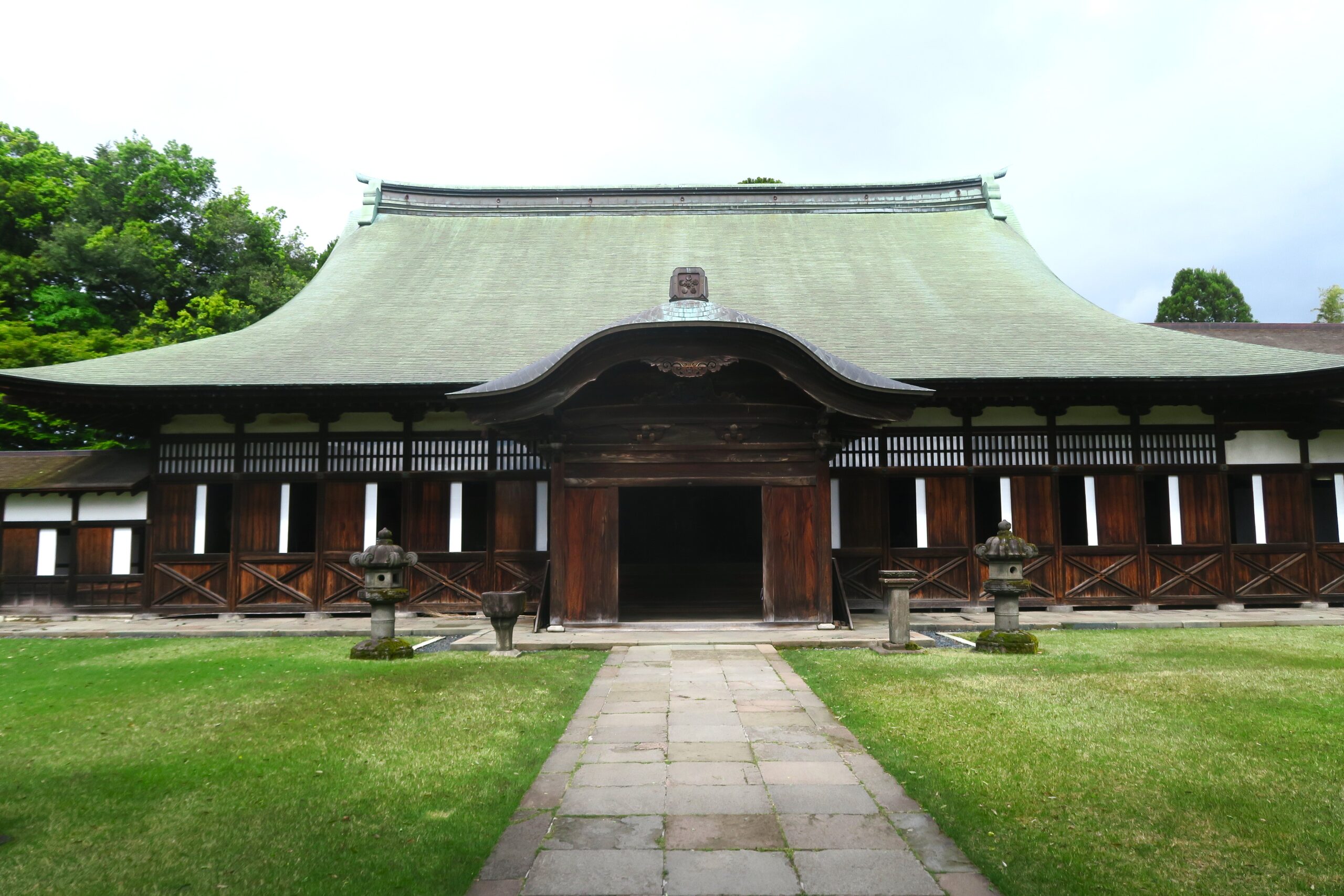 法堂は明暦年間(1655~1658)施工。建坪186坪、銅板葺き総檜造りで仏殿の2倍の広さをもち、説法の場であり境内第一の大建築です。構造は方丈建築の中に書院建築の要素を加味したもので、6室より成り立っています。