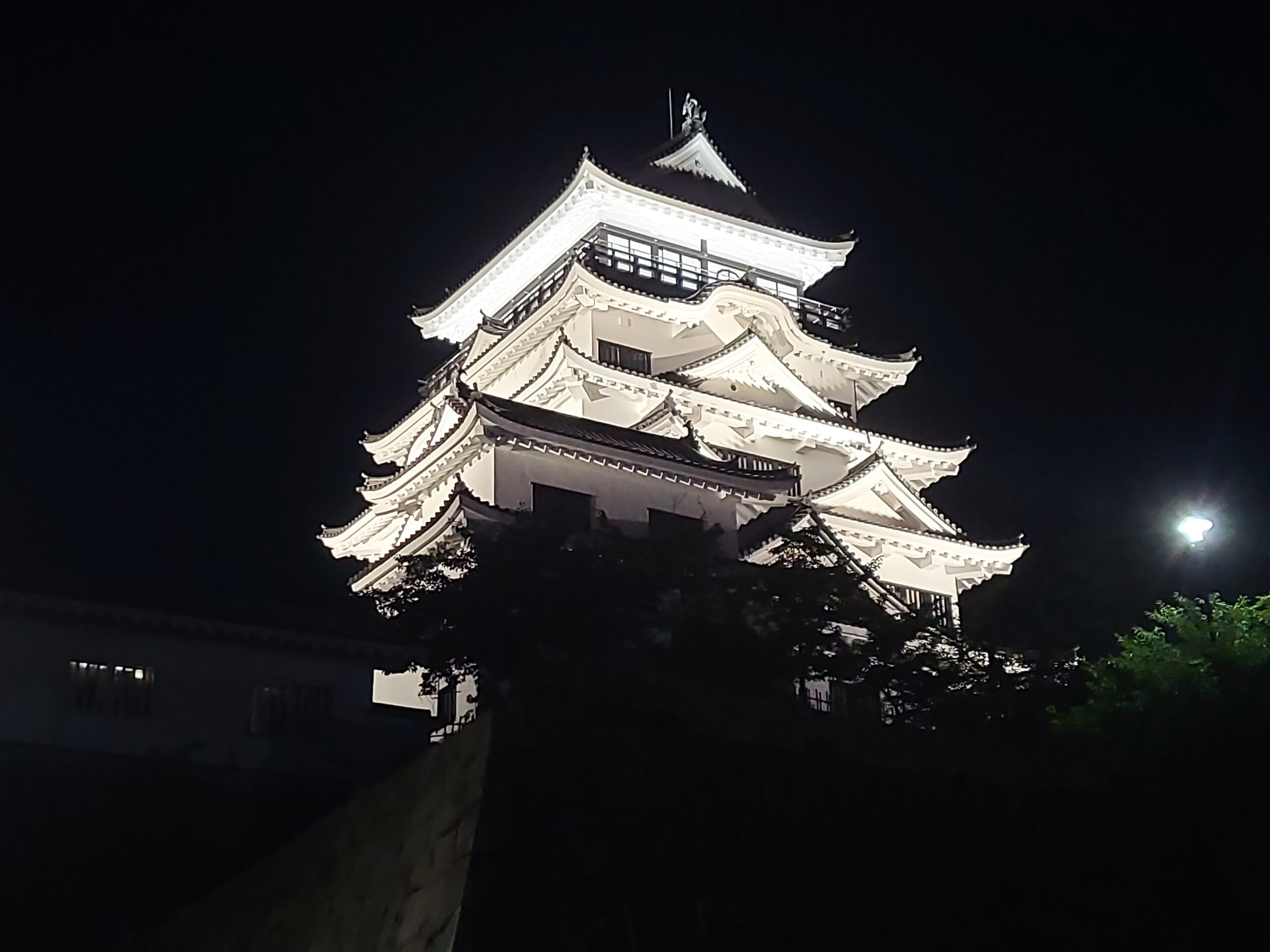 この後ライトアップされた福山城へ。東京タワーや横浜ベイブリッジ、明石海峡大橋などのライトアップを手がけた、世界的に有名な照明デザイナーの石井幹子さんを監修に迎え、2017年から夜間照明を整備。伏見櫓や筋鉄御門、狭間、御湯殿、月見櫓、福山城プロムナードに続いて、天守や鏡櫓、鐘櫓にもあかりが灯りました。