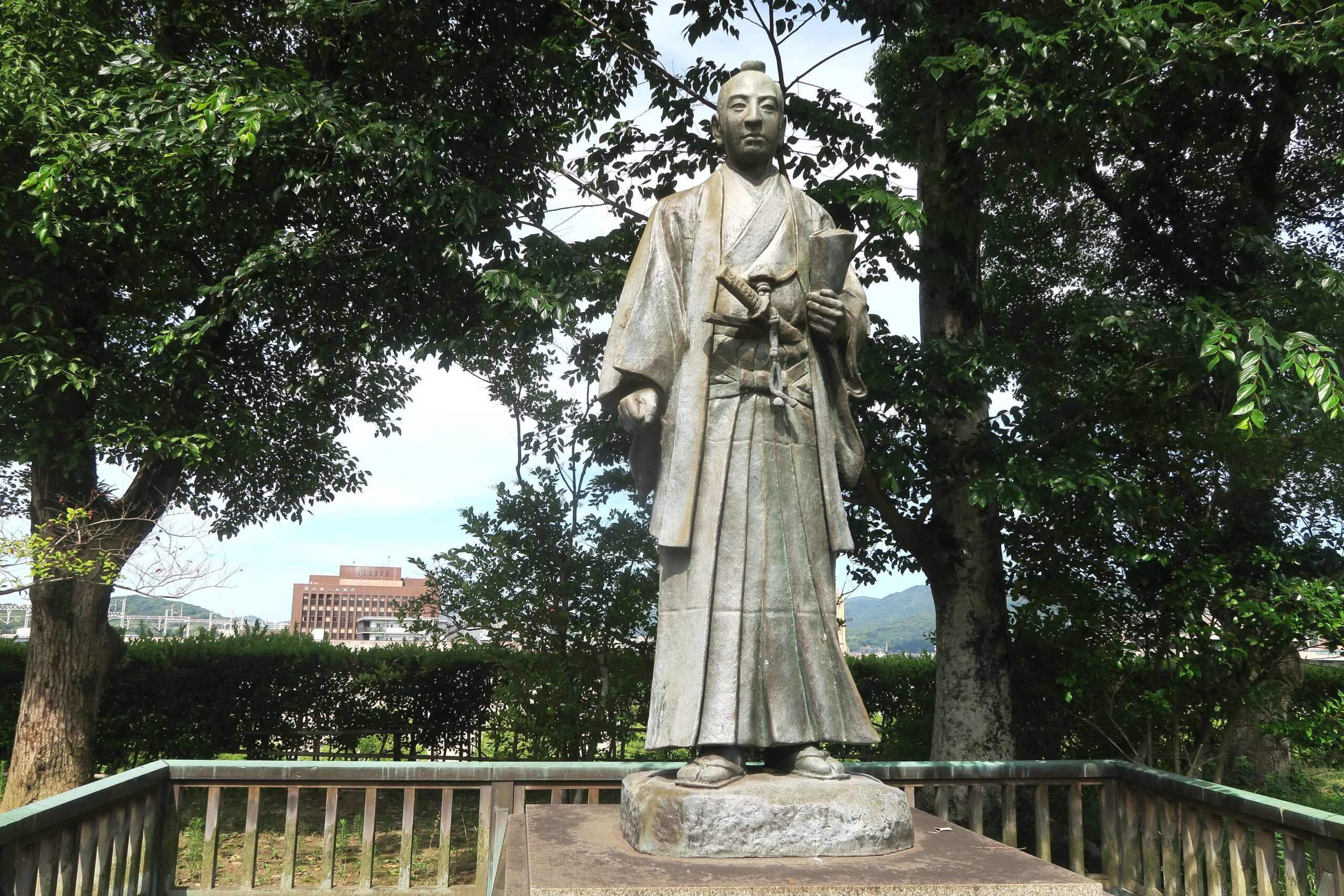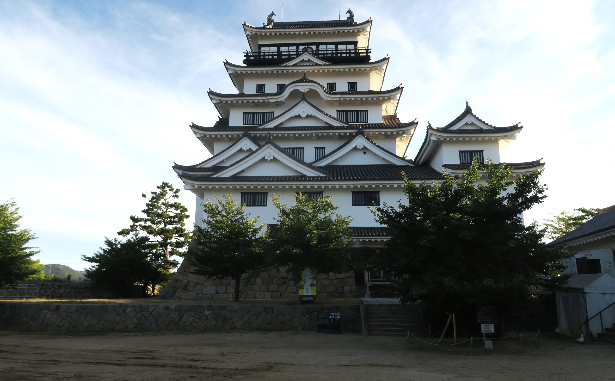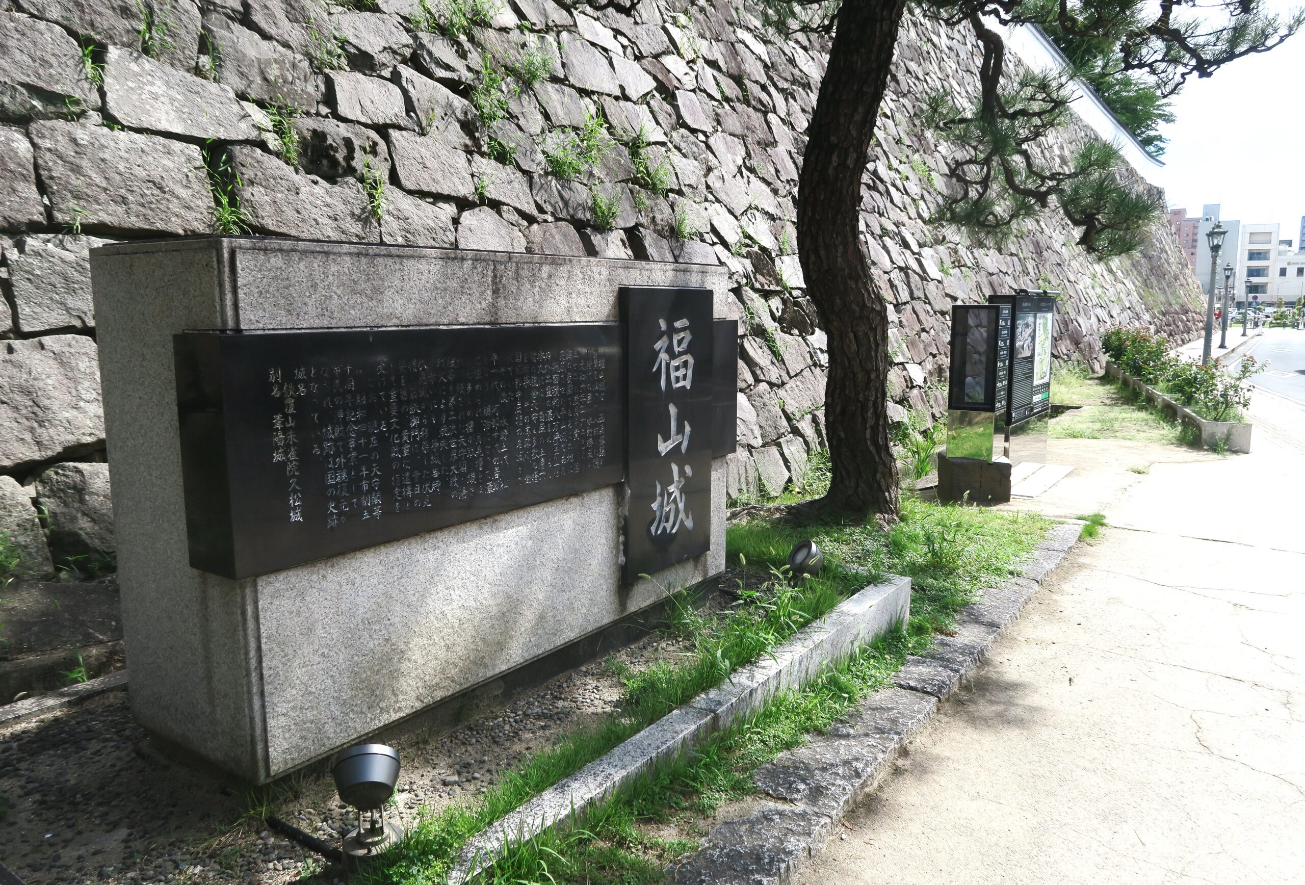 築いたのは福嶋正則の改易後に大和郡山から入封した水野勝成。父忠重の姉が徳川家康の生母於大の方で家康とは従兄弟にあたる譜代大名で、猛将として知られ鬼日向の異名を持つ武将。築城が開始されたのは、元和6年(1620)で元和元年(1615)の一国一城令後に新築された特例の城です。10万石の身代としては大規模の城が築かれたのは、この地が海陸両面の要衝にあり、安芸の浅野氏や長門の毛利氏など有力な外様大名がひしめく西国雄藩の中に幕府が打ち込んだと楔の意味合いが強く、戦略的・政治的に重要な役目を担っていました。武家諸法度により新たな城造りが制限されている中、幕府はいわゆる「天下普請」に準ずるものとして築城を許可したと言われ、緻密で堅固な三段の石垣で構成された「一二三段」の平山城です。歴代城主に水野氏、松平氏、阿部氏と譜代大名が名を連ねていることからも、幕府が重要視していたことがうかがえます。写真は水野勝成像