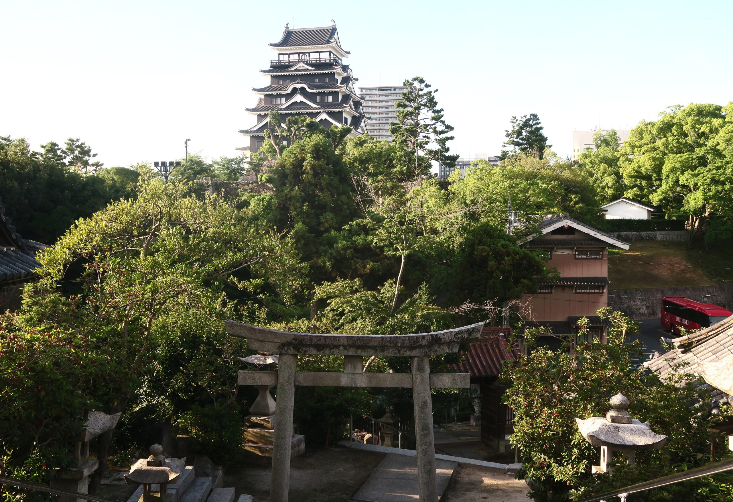 三蔵稲荷神社を降りると道を挟んですぐに備後護国神社があります。明治維新の戦死者を祀った備後神社と福知山城主阿部氏の祖先である孝元天皇と中興の祖正勝公を祖霊した阿部神社を合祀した神社です。福知山城主水野家の剣術指南役だった宮本武蔵が腰をかけたとされる石や、幕末長州藩に城を攻撃された時、現在神社のある天神山を抑えられたことで城内に様子が筒抜けになり半日で降伏したという話があります。