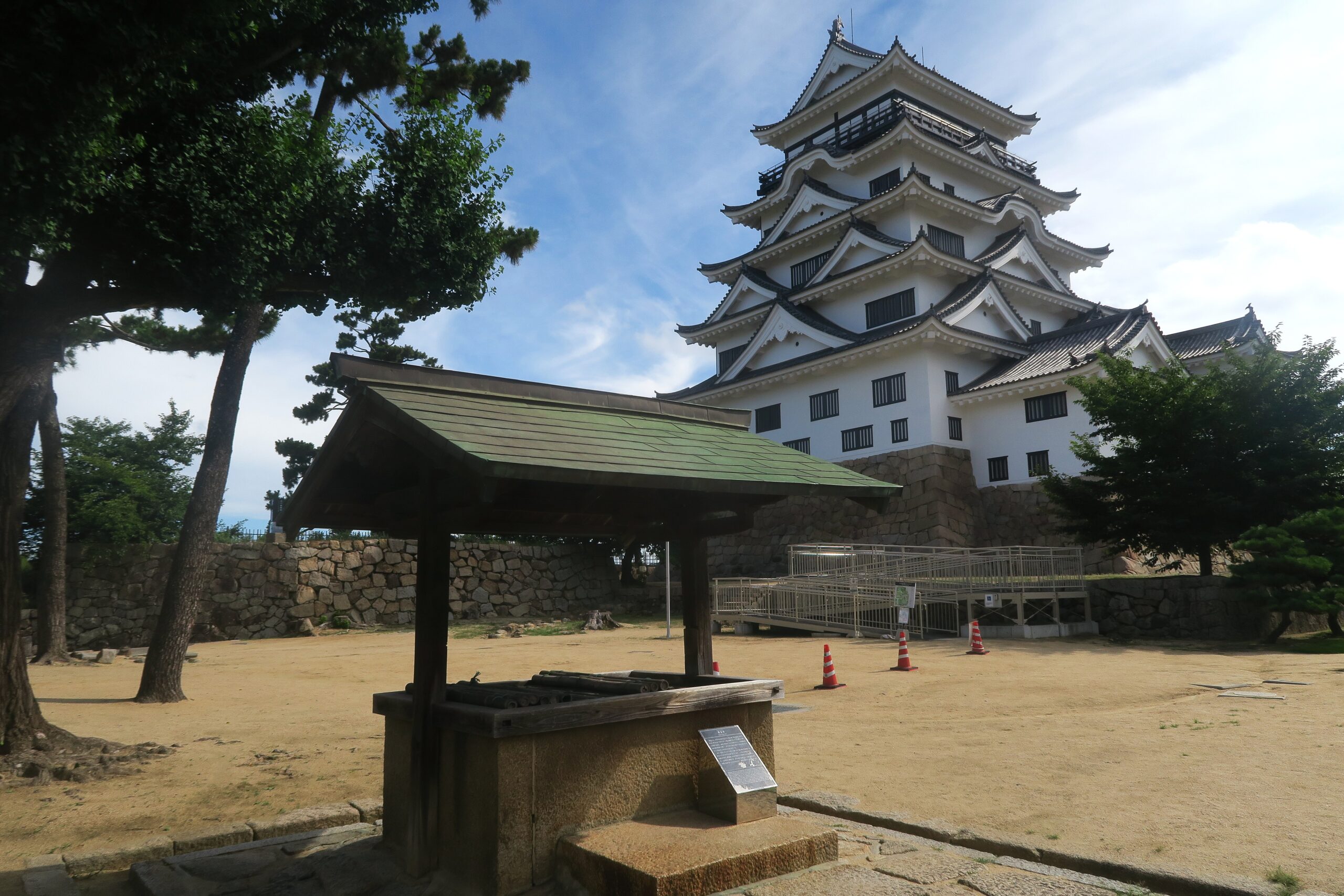 本丸の水源を支えてきた福山城で最も重要な井戸が黄金水です。明治5年(1872)に福山藩需であった江木鰐水が残した記録によれば、城内に黄金水にまさる井戸はなく、水野勝成が福山城築城の際、井戸の中に黄金を埋めて水気を清めたことから黄金水と呼ばれたと記されています。安政3年(1774)の古絵図には本丸に5つの井戸が記されておるが、黄金水のみが用水として有用と書かれています。井戸の深さは約13m、水深は約5mで水質は良好とのこと。