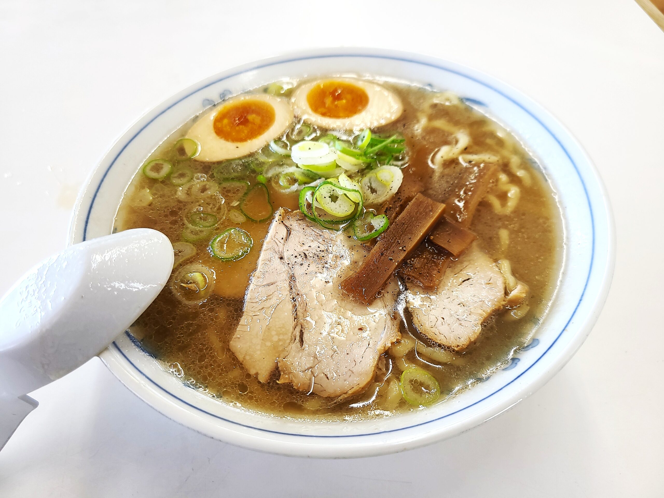 基本のとんこつ醤油味ラーメンに味玉をのせて注文。中太の麺にとんこつ醤油のスープがよく絡み、麺、スープ、麺と一気に箸が進み口の中にとんこつの旨味と醤油味が交互に広がります。脂っこさもなくするーと食べられる一杯です。