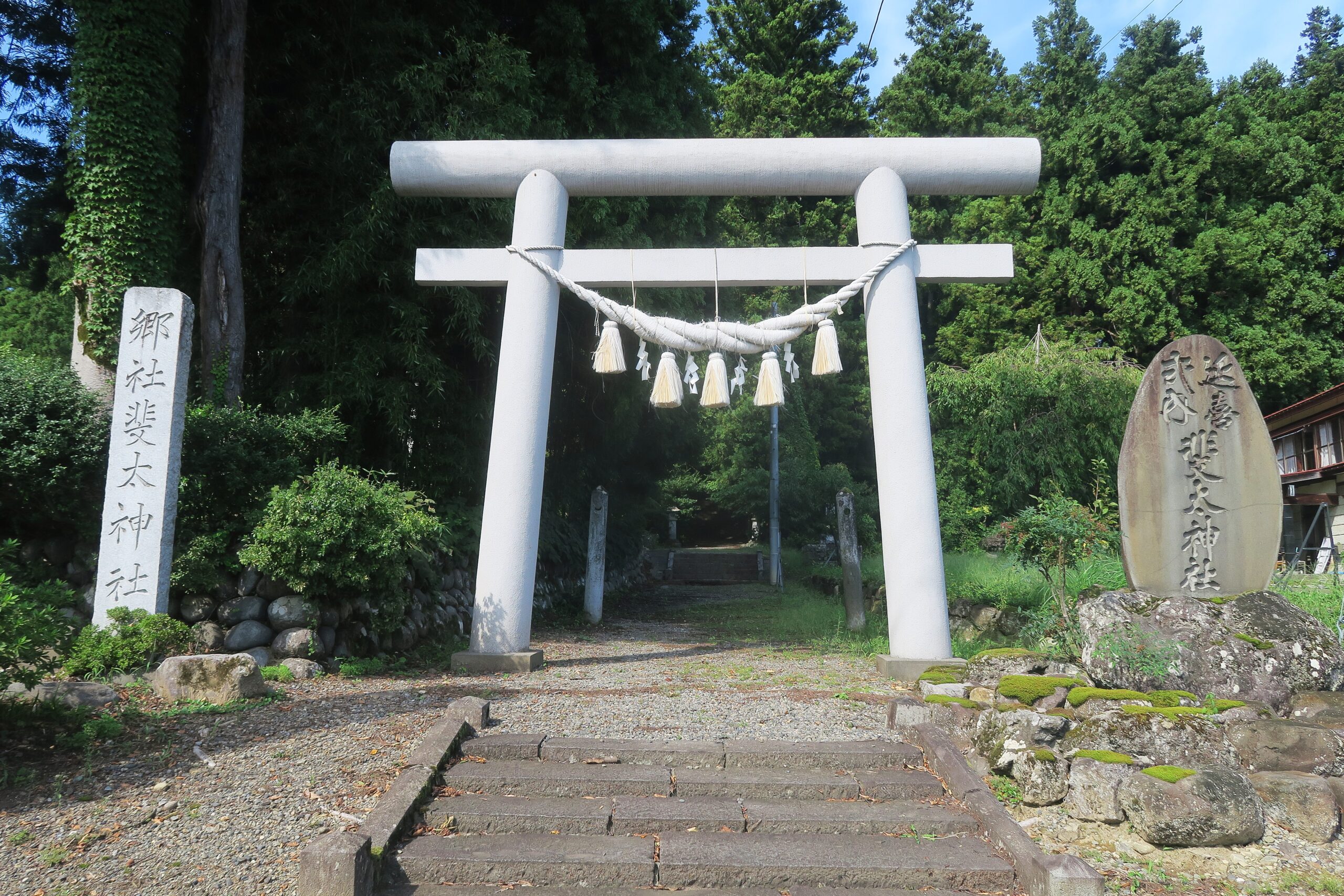 あとは下って駐車場脇の斐田神社に詣でます。鬱蒼とした杉木立に囲まれ、凛とした趣をたたえる斐田神社は、平安時代の初め大同2年(807)創建と伝わり、伊勢神宮と出雲大社の両方の流れをくむ神社で、第60代醍醐天皇時代に編纂された「延喜式(927年)」にも名前が残る古社です。祭神は大国主命、事代主命、建御名方命の三柱で、中風に効く薬を製造し、その格式とともに病気の神様として人々の信仰を集めていました。上杉謙信から厚く信仰され、その後高田藩主となった榊原家も代々参拝したと伝わります。