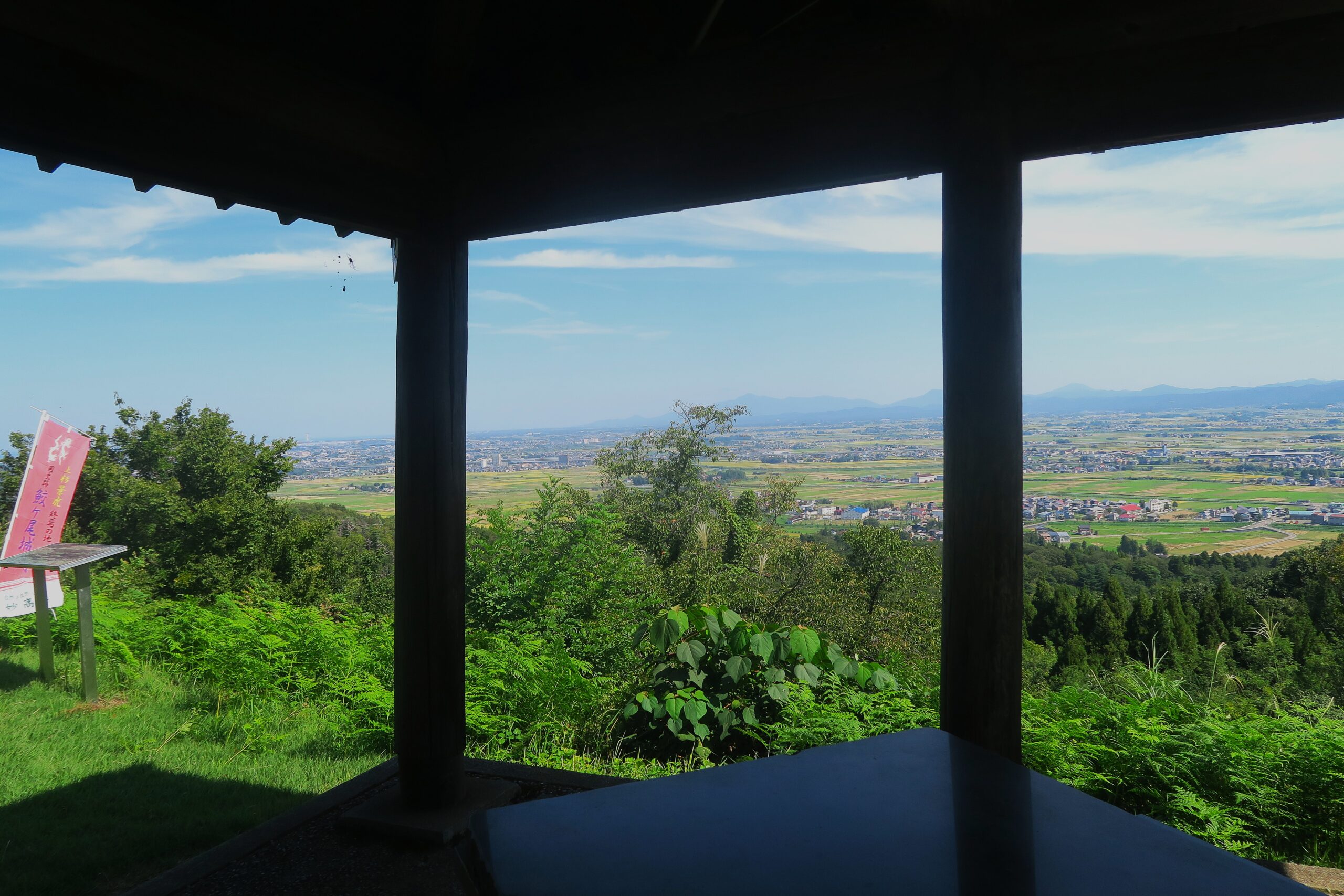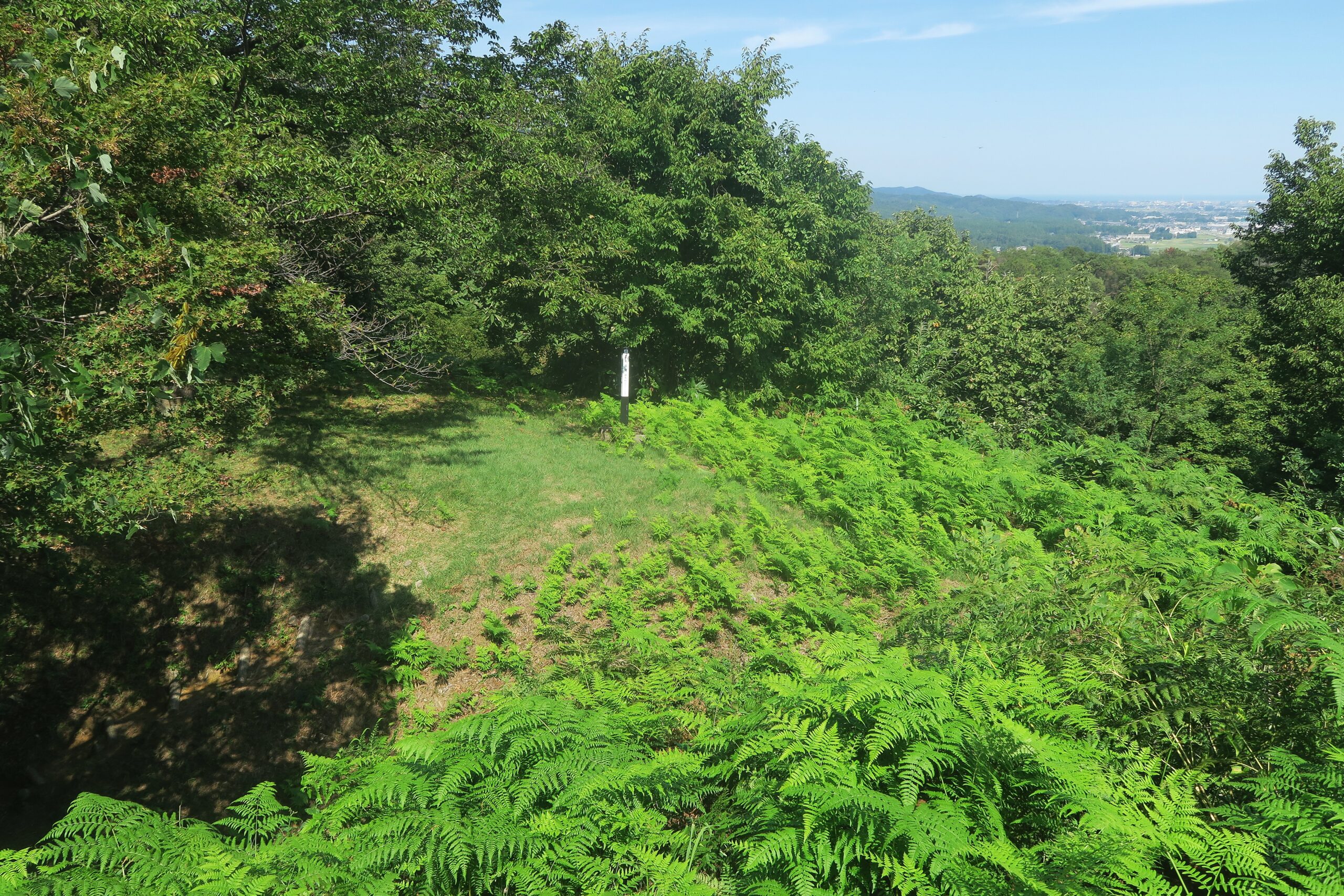 山頂部の最も眺望の優れた場所で、現在東屋も置かれ、標高185mの山頂部からは、北陸新幹線が縦断する高田平野を一望でき、北に日本海、南に信越国境を望む景観からは、鮫ヶ尾城が高田平野の入口を固める軍事的に重要な場所であったことがわかります。また上杉方の拠点城郭であった春日山城が良く見通せます。