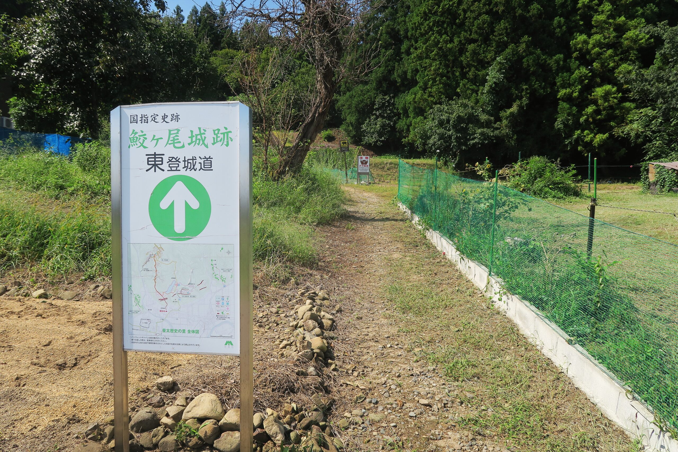 ふもとから山頂曲輪(本丸跡)に至る登城道(遊歩道)には、山城の北斜面を行く「北登城道」と、山頂につながる尾根筋を行く「南登城道」と「東登城道」の3つがあり、綱張りについても登城道にあわせて城域を「北遺跡群」「南遺跡群」「東遺跡群」の大きく3地区に区分されています。今回は大手登城道である南登城道が野獣と遭遇する可能性が高いとのことで、東登城道から山頂を目指し、北登城道で総合案内所へ下るコースを選択しました。