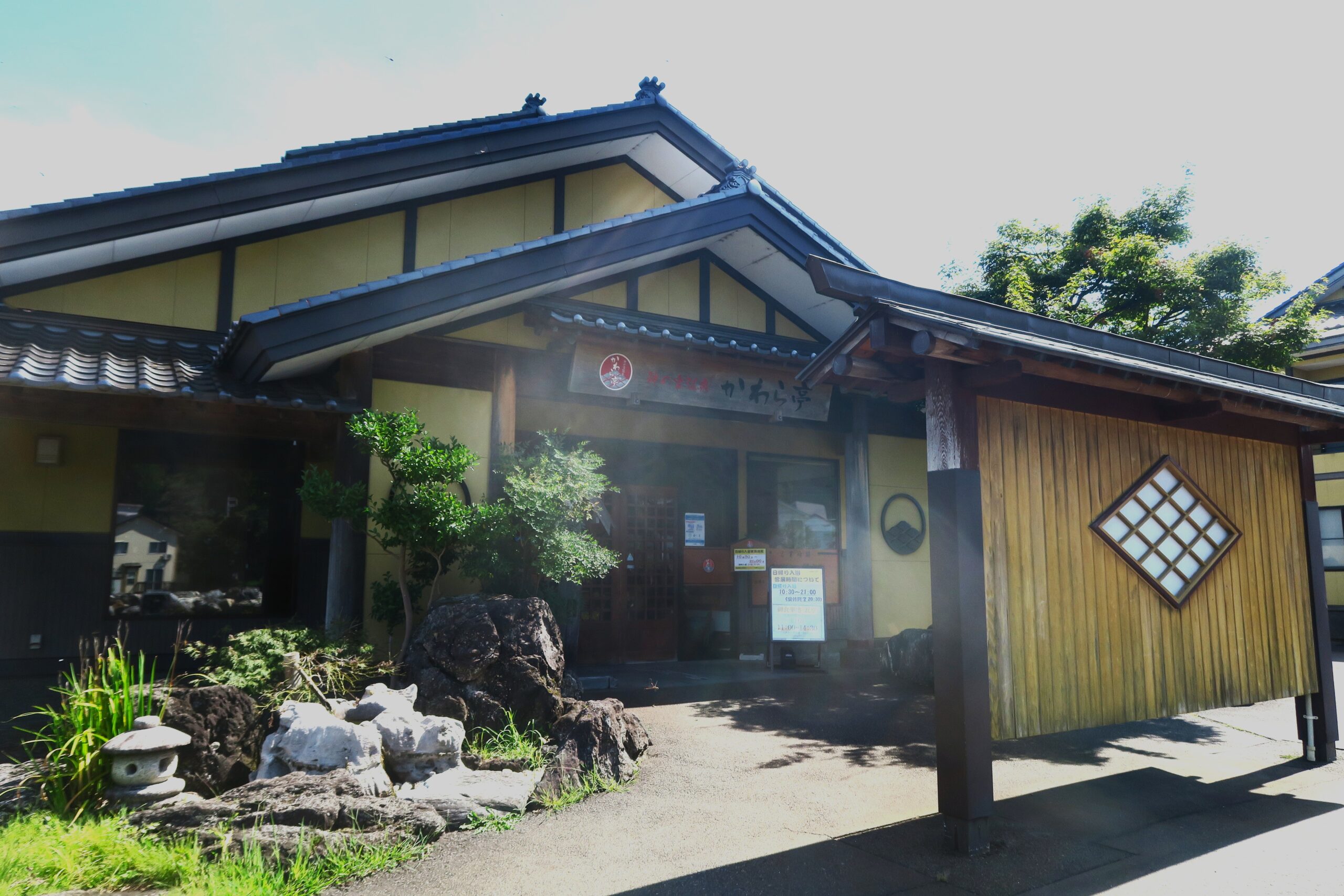 斐田神社の道路1本東に入ったところに体に疲れを癒してくれる神の宮温泉 かわら亭 景虎の湯があります。アパホテルグループで日帰り入浴料も貸タオル付で1000円です。自慢の温泉は、内湯も露天風呂も巨石を並べて設えた見事な岩風呂に「ナトリウム塩化物泉」と「メタケイ酸」の2種類の湯が楽しめます。メタケイ酸のお湯に入った後は塩化物泉の温泉で仕上げるのが“美人をつくる”おすすめの入浴法です。