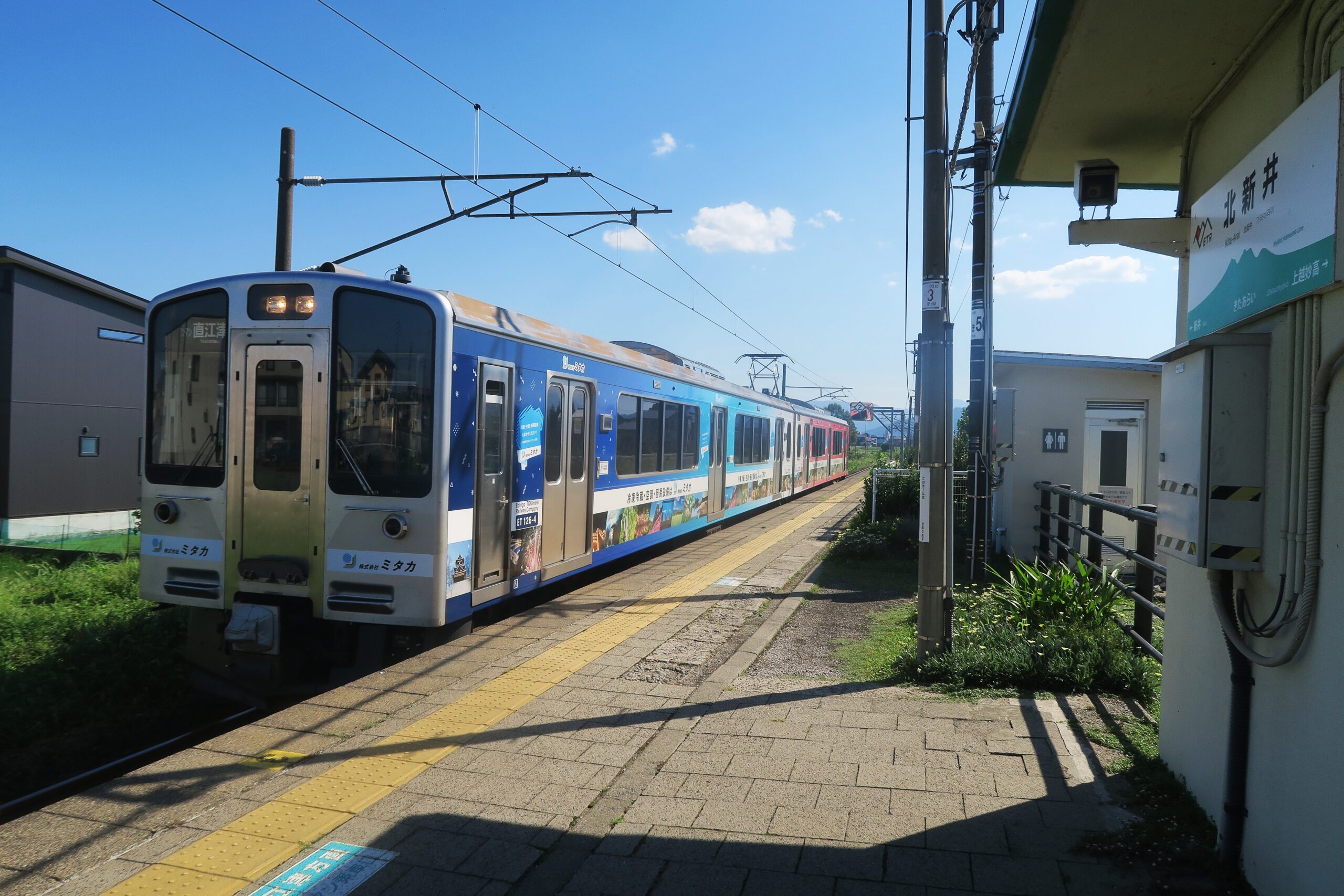 えちごトキめき鉄道妙高はねうまライン北新井駅から出発します。駅構内に徒歩用アクセス図斐太歴史の里を歩くのリーフレットが設置されていますので活用してください。
