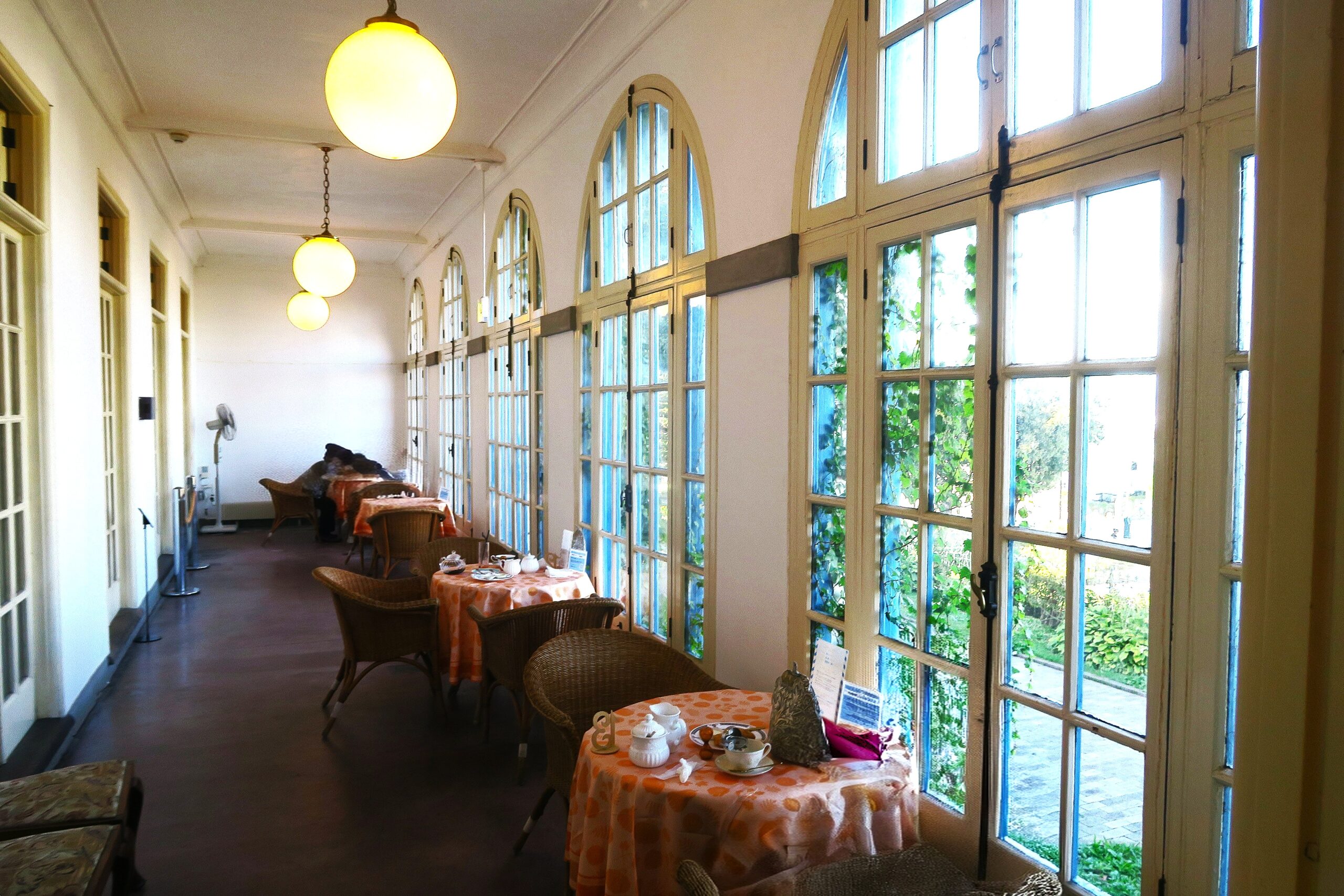 1階のカフェ「ティールーム ヴィクトリアンローズ」では、英国から取り寄せやアンティーク調度品に囲まれて優雅なひとときが過ごせ、坂道歩きの疲れほぐれていきます。窓の外には美しいローズガーデンが広がる。