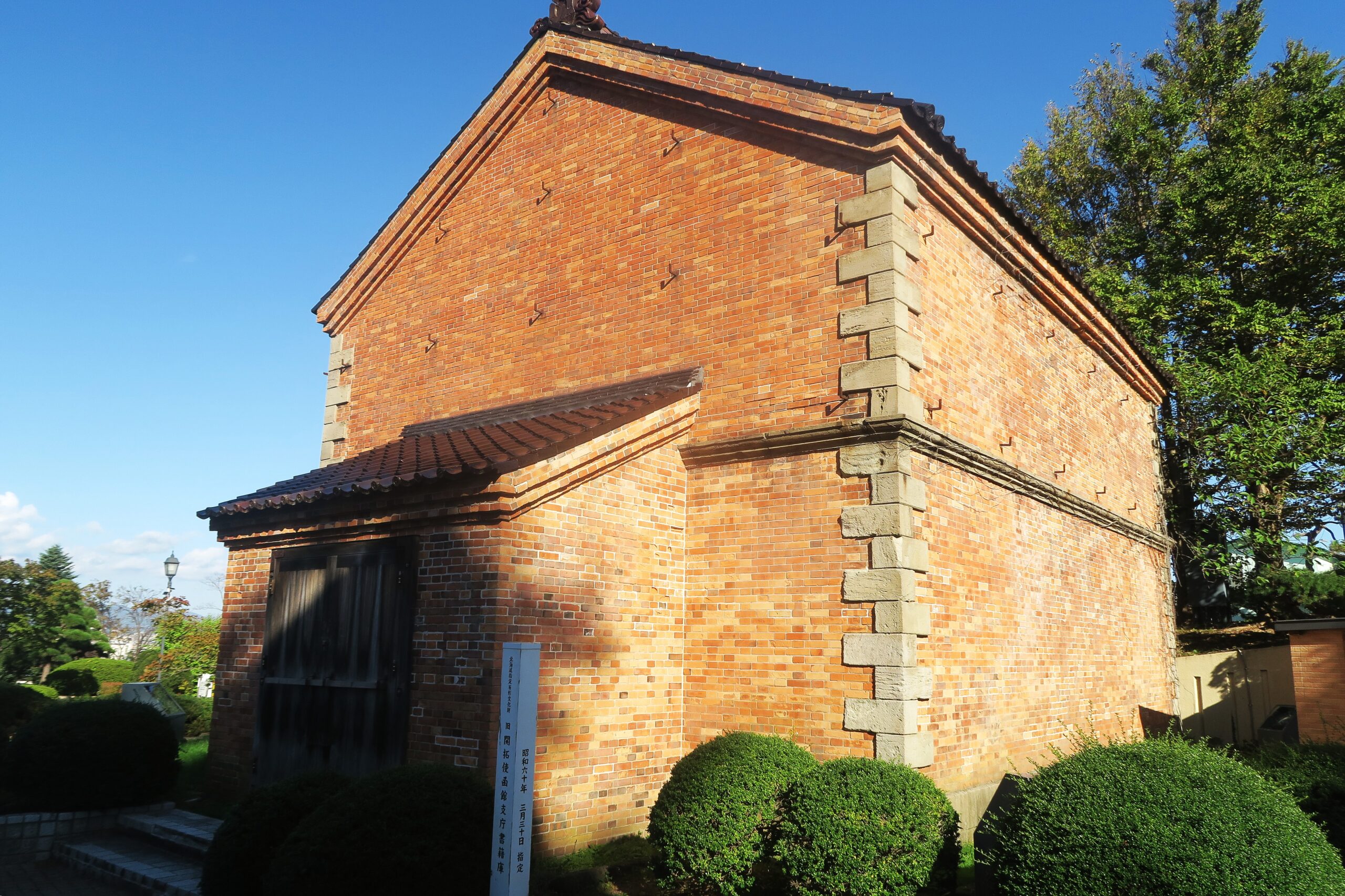 旧開拓使函館支庁書籍庫は明治13年(1880)に建てられたと推定され、明治40年(1907)の大火でも類焼を免れた函館に現存する役所関係の最古の煉瓦造建築物です。各アーチ窓に防火鉄扉と鉄柵を設け、隅石や煉瓦の積み方にフランス積みを取り入れるなど、デザインや技法に洋風の特徴があるが、大きさは蔵風で小ぶりなところも面白い。煉瓦の一部には、開拓使が明治5年(1872)に創設した茂辺地煉瓦石製造所の刻印があります。