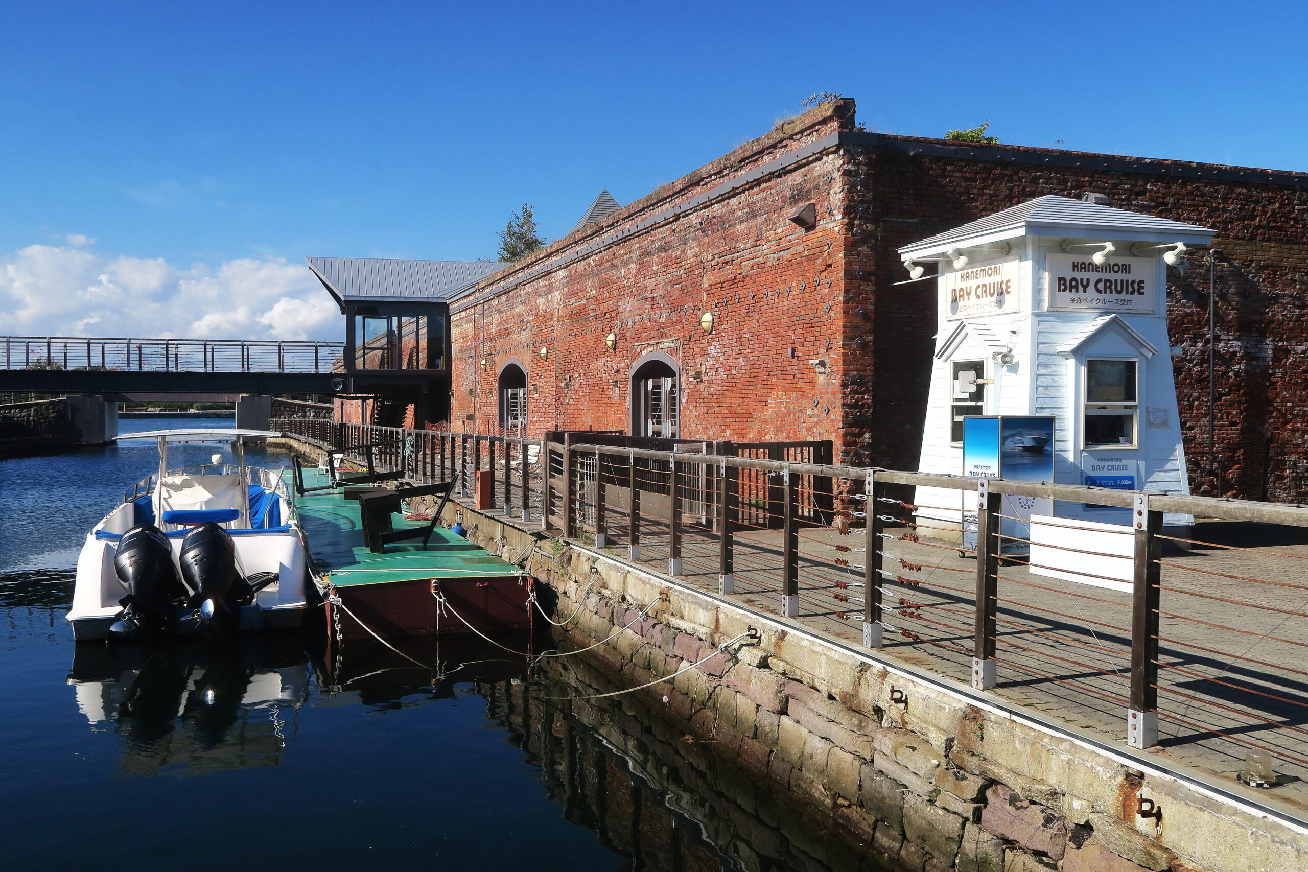 湾岸は幕末から埋め立てられ、港沿いにレトロな赤レンガ倉庫が立ち並ぶベイエリアにある金森赤レンガ倉庫で港町の風情を楽しみます。始まりは明治2年(1869)に市内で輸入品を扱う金森洋物店を開業し、海産物を商うなどして巨万の富を得た渡邊熊四郎(函館四天王の一人)が礎を築いた営業倉庫の数々。昭和58年(1983)公開の高倉健が寡黙な居酒屋店主を好演した映画「居酒屋兆治」や古くは昭和34年(1959)公開、小林旭の「ギターを持った渡り鳥」でもロケ地となった場所です。