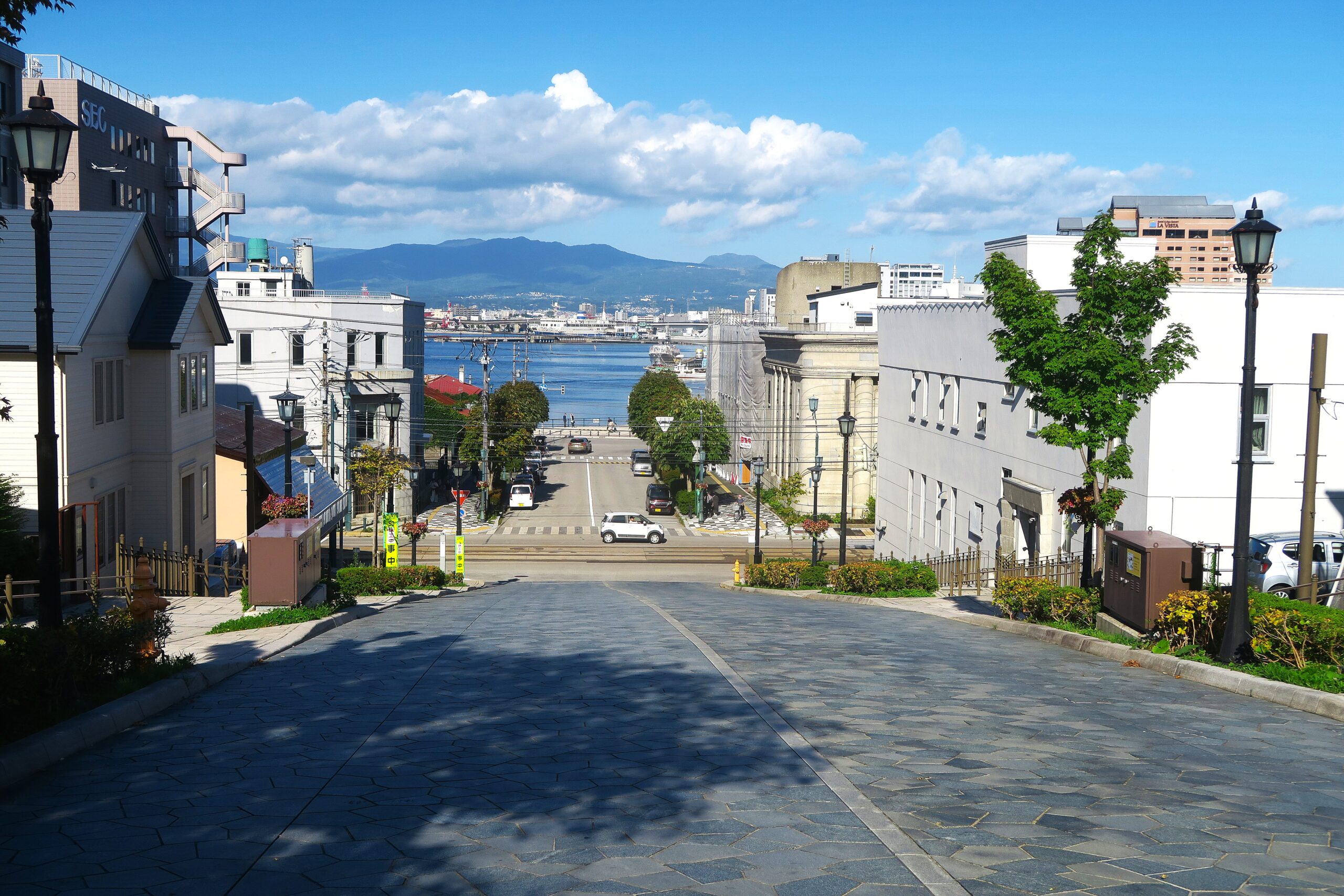 ベイエリアの先を進み、函館山へ導いてくれるのが八幡坂です。かつてこの坂を上りきったところに函館八幡宮があったとされ、名前の由来となっています。坂の下の函館港に向かって石畳の坂道が一直線に伸びる元町で最も美しい坂と言われます。映画やテレビCMにも度々登場し、かつてライオンのCMで年配の夫婦が手をつなぎながらスキップするシーンのロケ地として評判になり、通称チャーミーグリーン坂と呼ばれることもあります。ミシュラン・グリーンガイド・ジャポン一ツ星