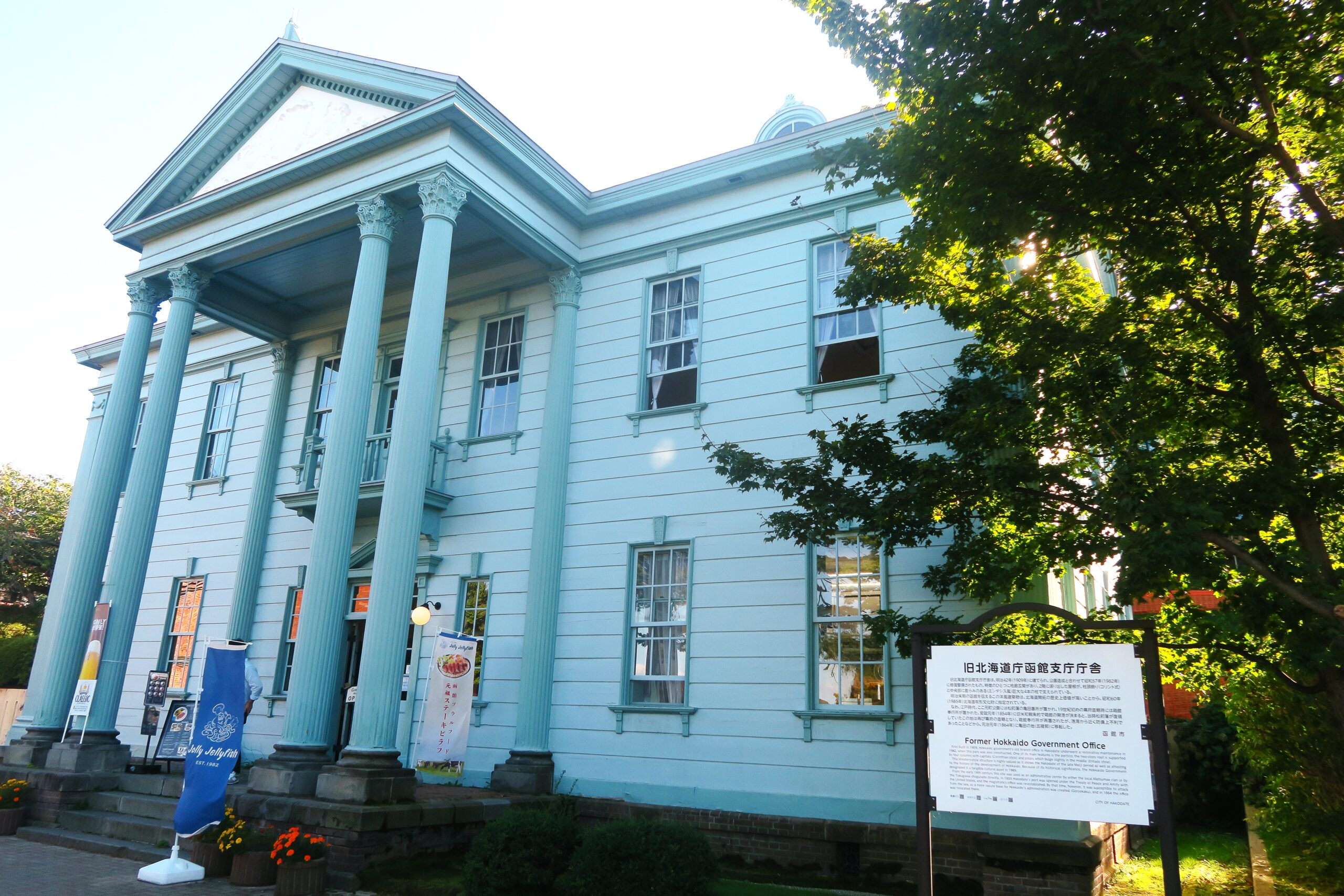 公園内に旧北海道庁函館支庁庁舎(現・函館市写真歴史館)は、明治42年(1909)建築。特徴の一つに玄関ポーチのペディメント(破風)を支えるクラシックな玄関回りは、その見事さとギリシャの建築様式を消化し、自在にアレンジしていて明治の木造建築の中でもひときわ美しく、公会堂や教会群と共に元町界隈に彩りを添えています。