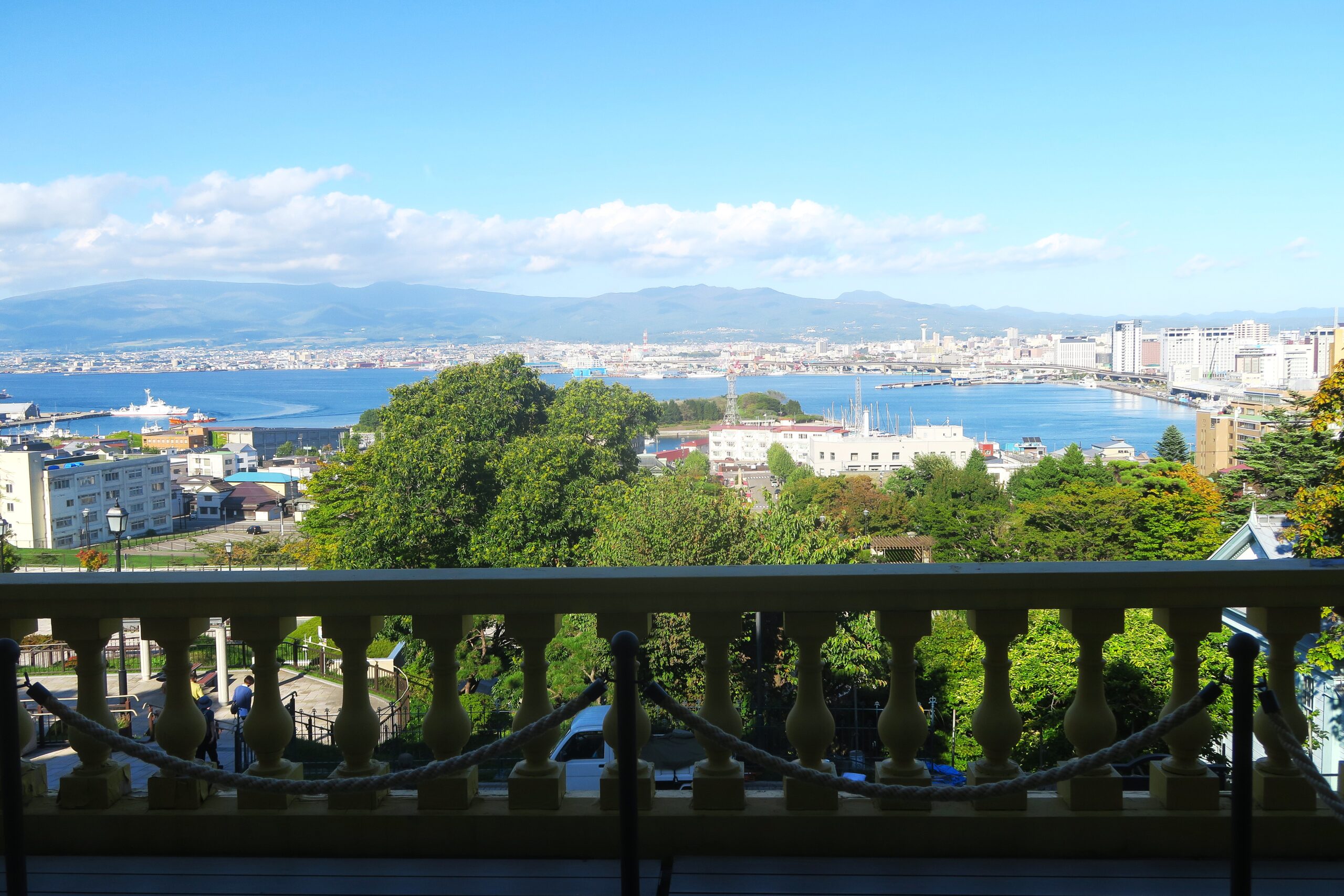 大広間から中央のベランダに出れば、上ってきた基坂の先には波止場が望め『ミシュラン・グリーン・ガイド・ジャパン』二ツ星のこれぞ函館港!という素晴らしい景観が楽しめます。