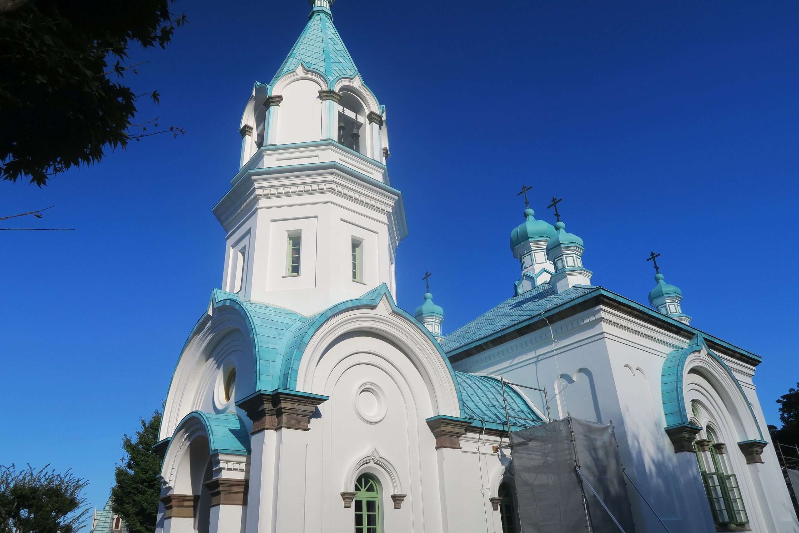 函館ロープウェー山麓方面に向かいながら港ヶ丘通りを歩けば、教会群のチャチャ通りへ。チャチャとはアイヌ語でおじいさんの意味で通りを挟んで3つの教会が立っています。函館ハリスト正教会は、江戸末期の万延元年(1860)建立され、ロシア人ニコライによって伝えられた日本で初めてのロシア正教の教会。タマネギ型の6個のクーポルが特徴的な函館元町のシンボル的教会で、「日本の音風景百選」に認定されるほど美しい鐘の音から通称「ガンガン寺」と呼ばれています。現在の建物は大正5年(1916)に再建されたもので、ロシアのビザンチン様式の聖堂は国の重要文化財に指定されています。ハリストとはギリシャ語で「キリスト」の意。ミシュラン・グリーンガイド・ジャポン一ツ星
