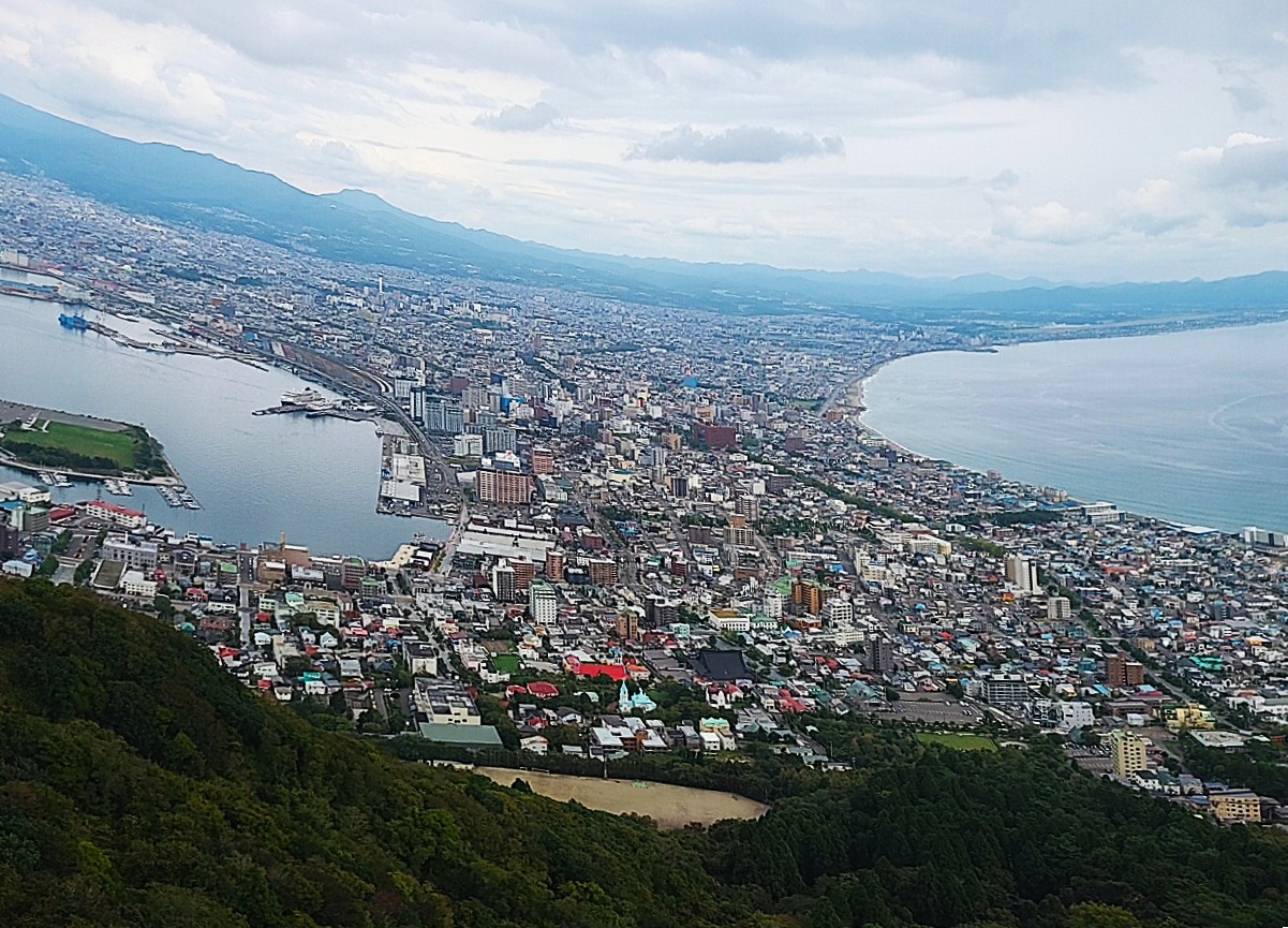 教会群のある元町エリアを散策したら、ミシュラン・グリーンガイド・ジャポン三ツ星の函館観光の定番中の定番、函館山ロープウェーで山頂に向かいます。函館山は、牛が横たわった姿に似ていることから臥牛山とも呼ばれる津軽海峡に突き出た陸繋島の山で、山麓駅から海抜334mの山頂駅まで定員125人のゴンドラで3分の空中散歩が楽しめます。山頂展望台からは、津軽海峡と函館湾で両側が挟まれ、細くくびれた市街地が、かなたの山並みに向かって緩やかに広がっていくたたずまいが、独特の眺望になっていて何度見ても飽きません。
