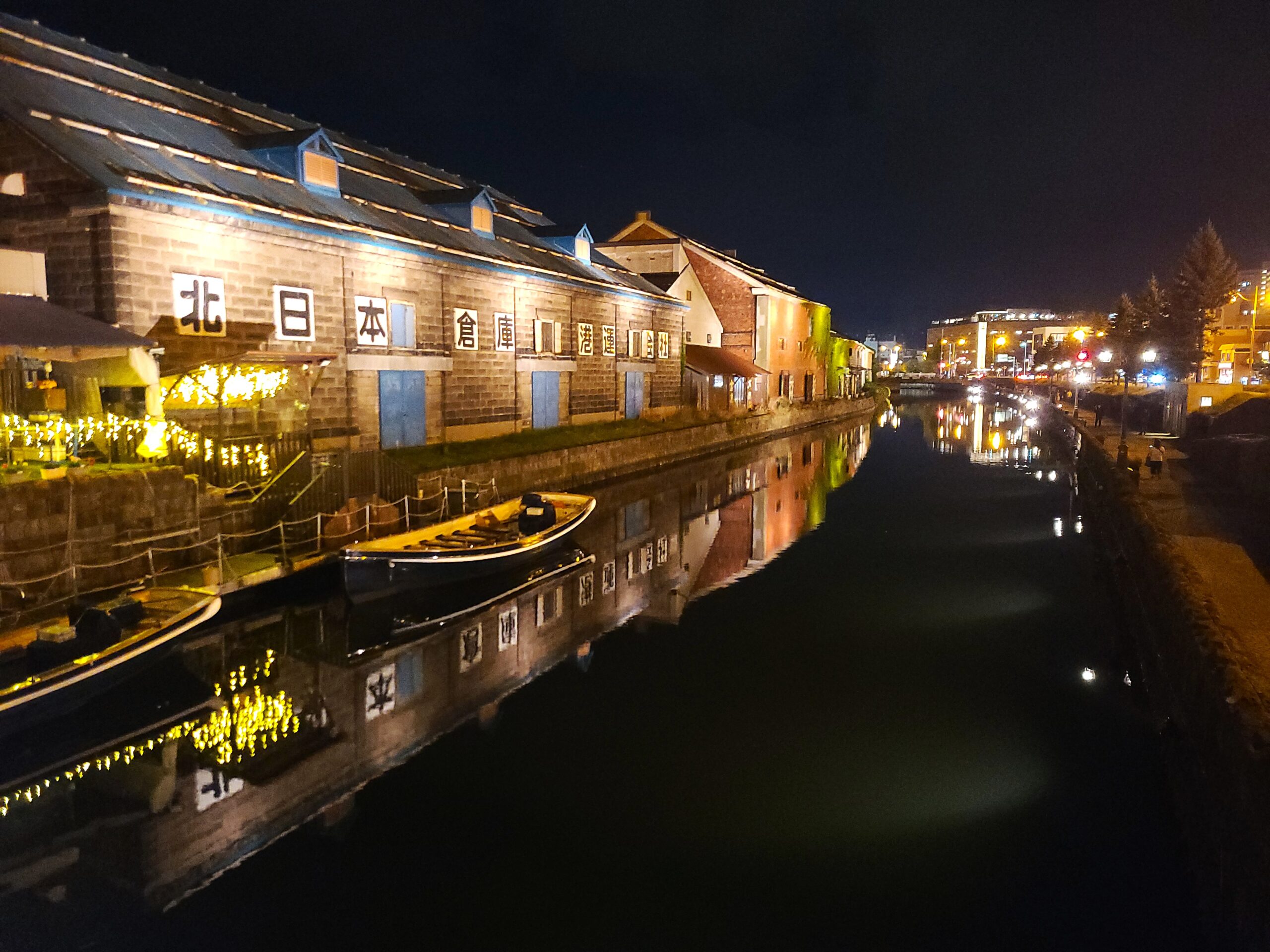 夜のライトアップされた小樽運河