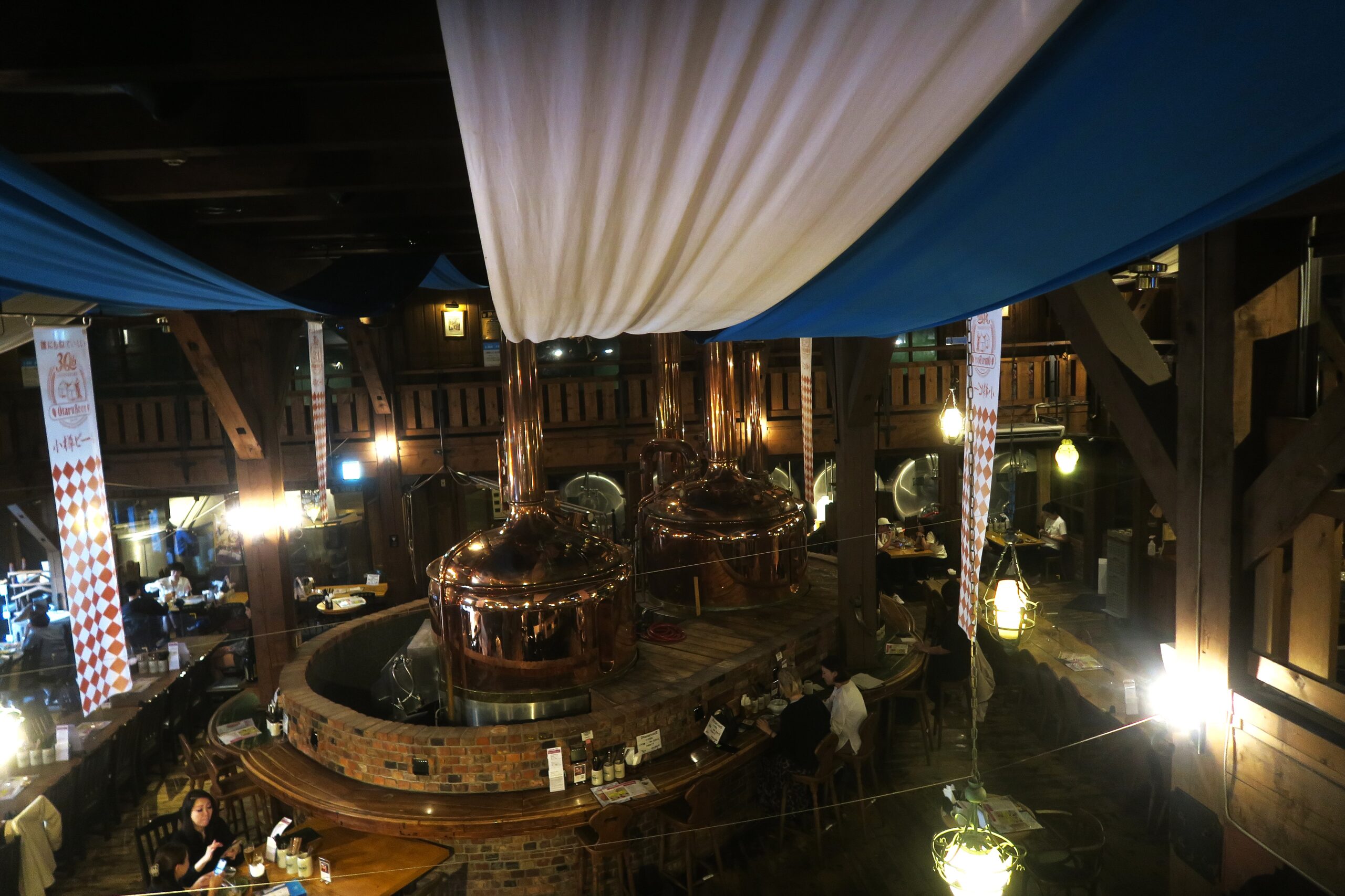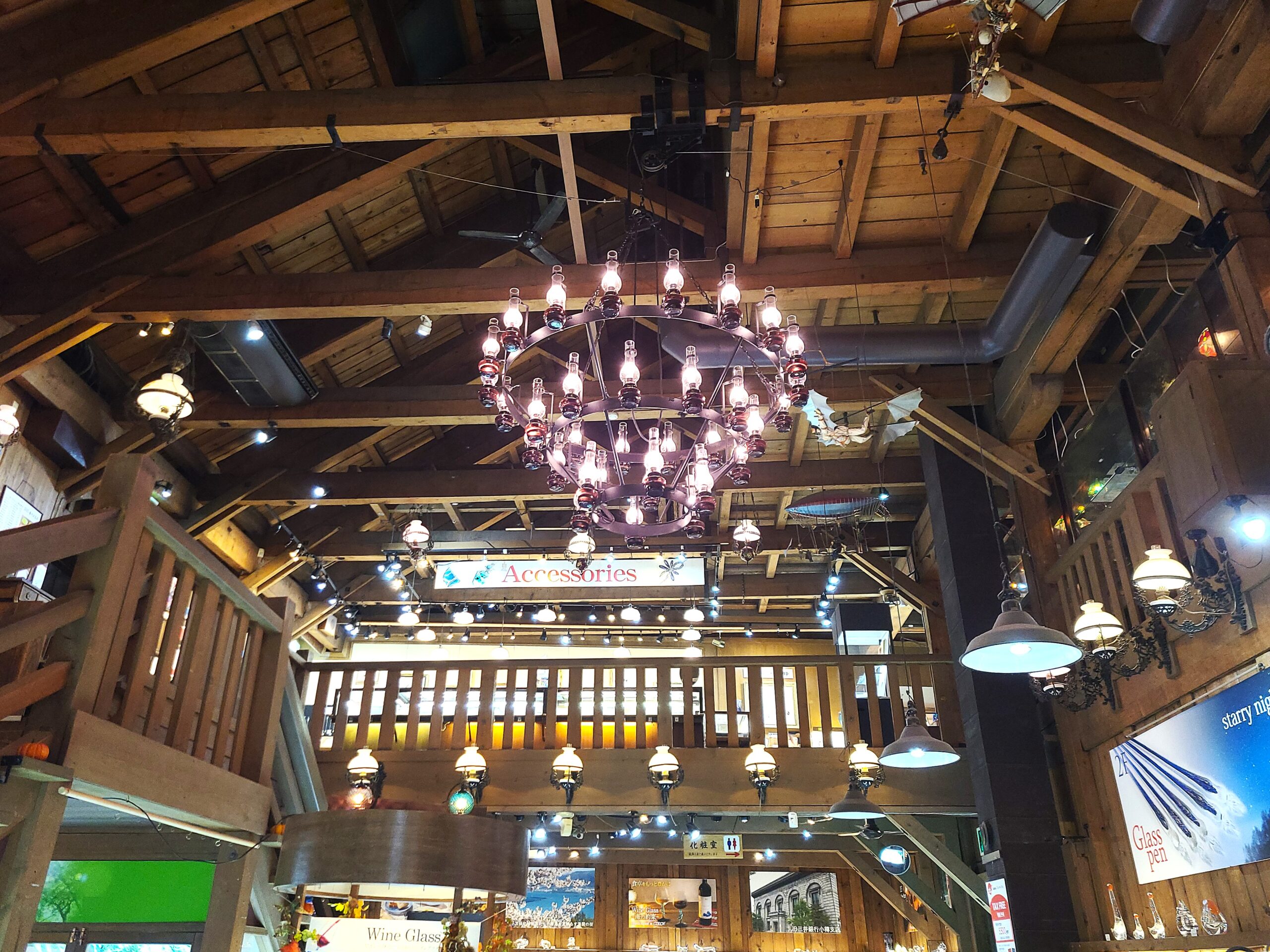 中央通路があるのが特徴で、通路を挟んでギャラリーの反対側にある北一硝子三号館 北一ホール(旧木村倉庫)では天井の高い倉庫内に一つ一つ手で灯される167個の石油ランタンが輝く幻想的な空間の店内で喫茶・食事が楽しめます。