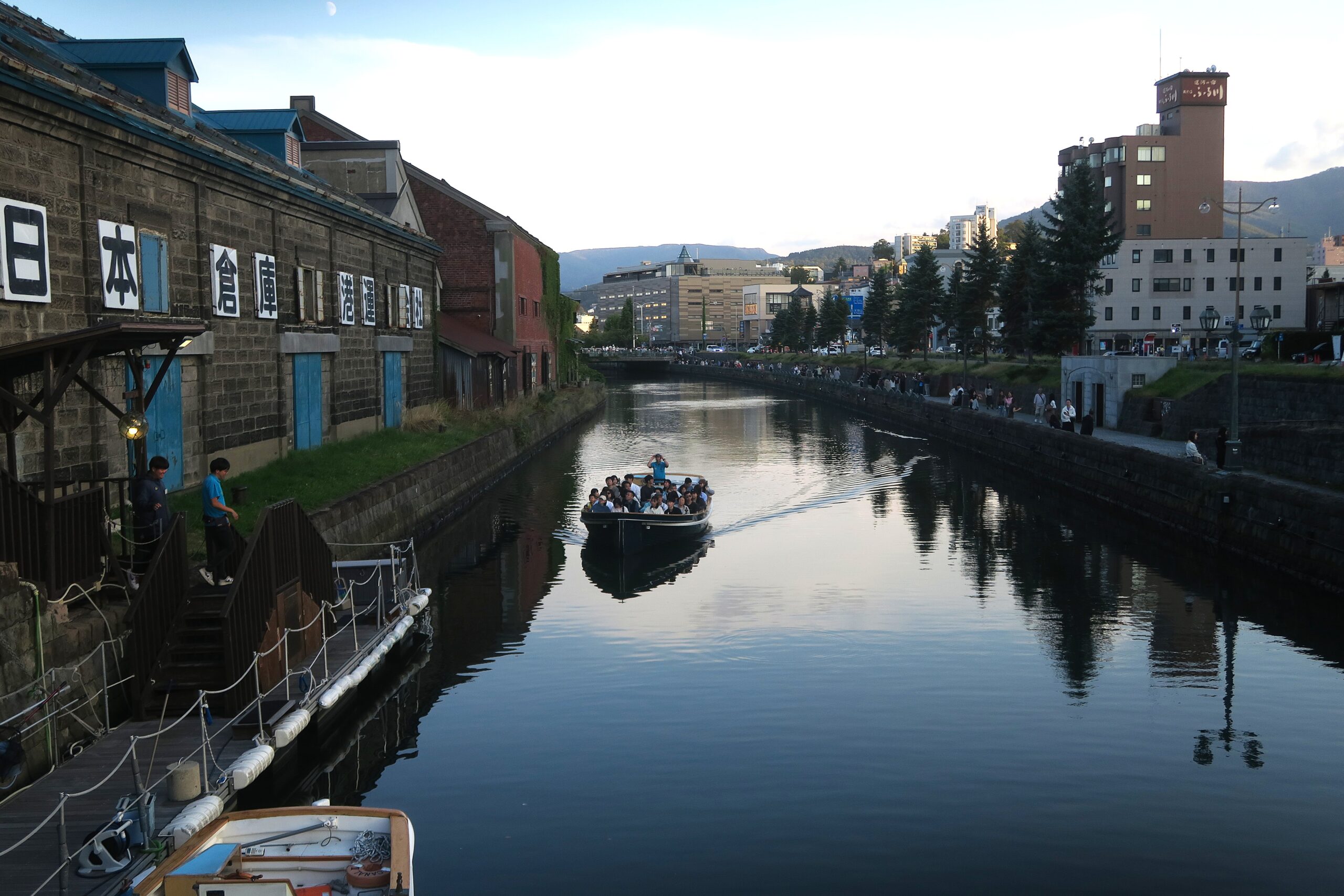 小樽運河クルーズは、小樽運河中央橋発着の運河と港を巡る40分ほどのクルージングです。キャプテンが運河の歴史や倉庫・小樽港を案内してくれます。クルーズではたくさんの橋をくぐりますが、中でも特に低い“龍宮橋”をくぐる際に橋桁に触れると運気が上がるらしい。