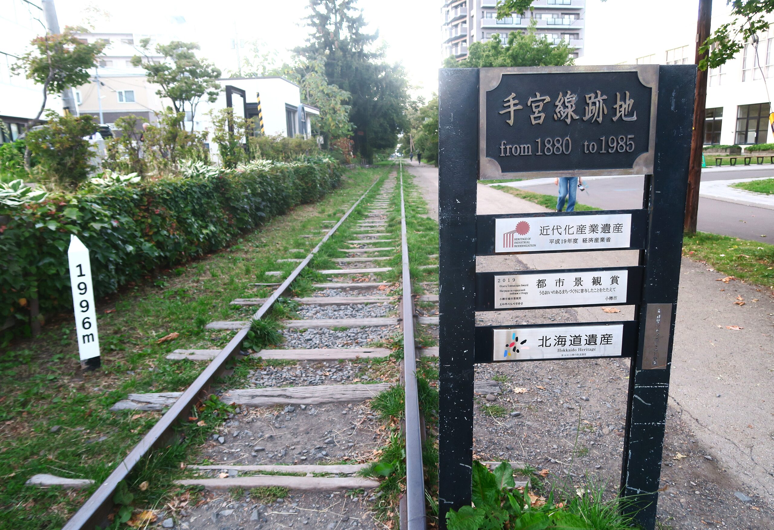 小樽駅から海に向かって延びる緩やかな坂の中央通りを下っていくと手宮線と交差します。国鉄手宮線(手宮~札幌)は、明治13年(1880)に北海道で最初の鉄道、日本では3番目の鉄道として、アメリカ人鉄道技師ジョセフ・ユーリー・クロフォードの手により開通した官営幌内鉄道の一部です。幌内(現三笠市)炭鉱から石炭を港のある小樽まで輸送するルートとして開発され、2年後に全通しました。その歴史に幕を閉じたのは昭和60年(1985)、現在は、当時使っていた線路や踏切、遮断機といった遺構を残す手宮線跡として一般開放されており、寿司屋通りから小樽市総合博物館本館(手宮駅跡)までが約1.6kmの散策路として整備されています。