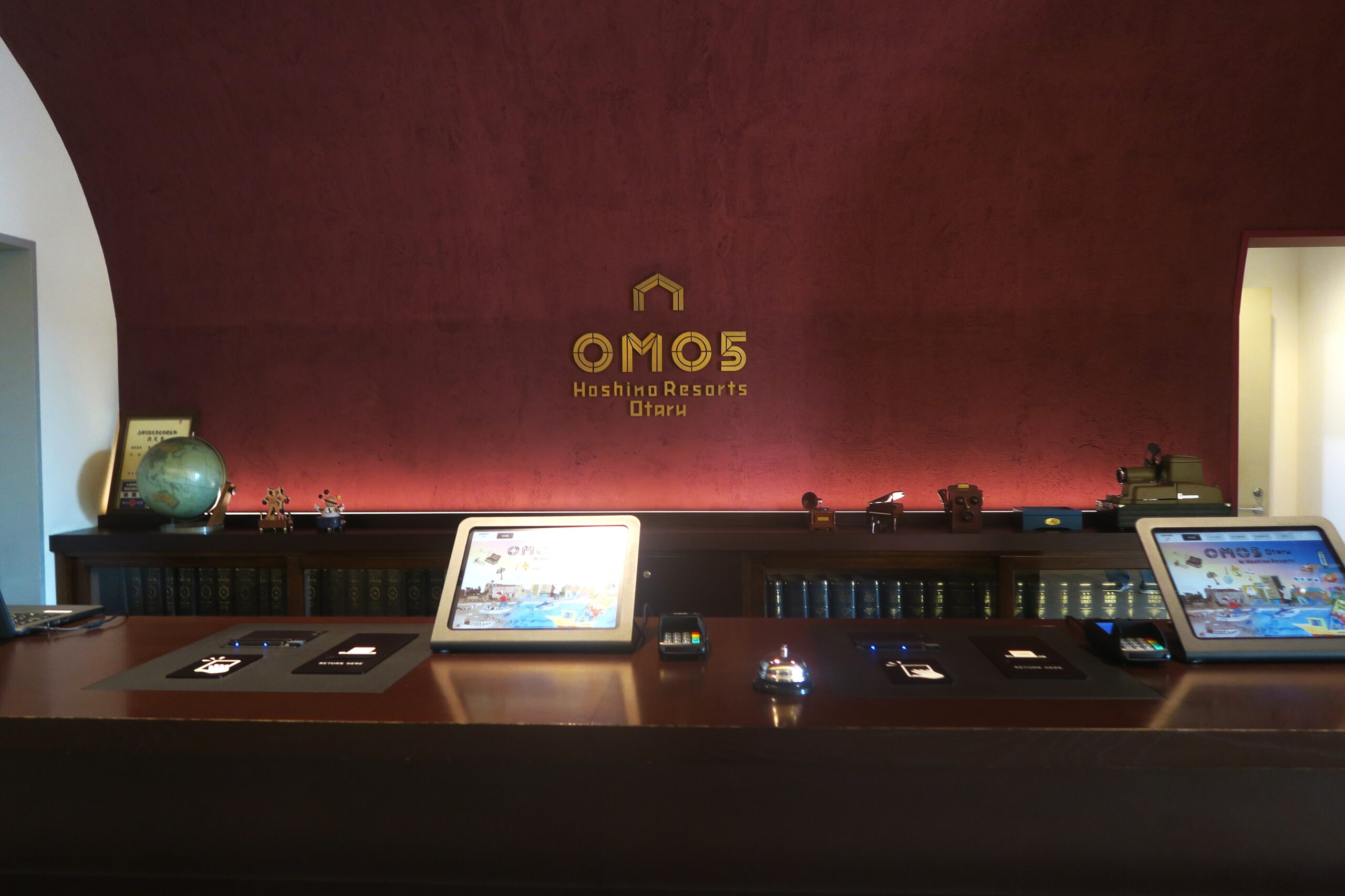 そんな色内地区にオープンした今宵の宿がホテル「 OMO5 小樽 by星野リゾート」です。昭和8年(1933)に建てられた旧小樽商工会議所をリノベーションした南館と、新たに建築された北館の新旧二つの建物からなる。写真のフロントがある北館のラウンジには旧会議所時代の家具や備品がレイアウトされ、レトロモダンな雰囲気。客室はツイン、スーペリア、トリプルなど8タイプ、全92室。