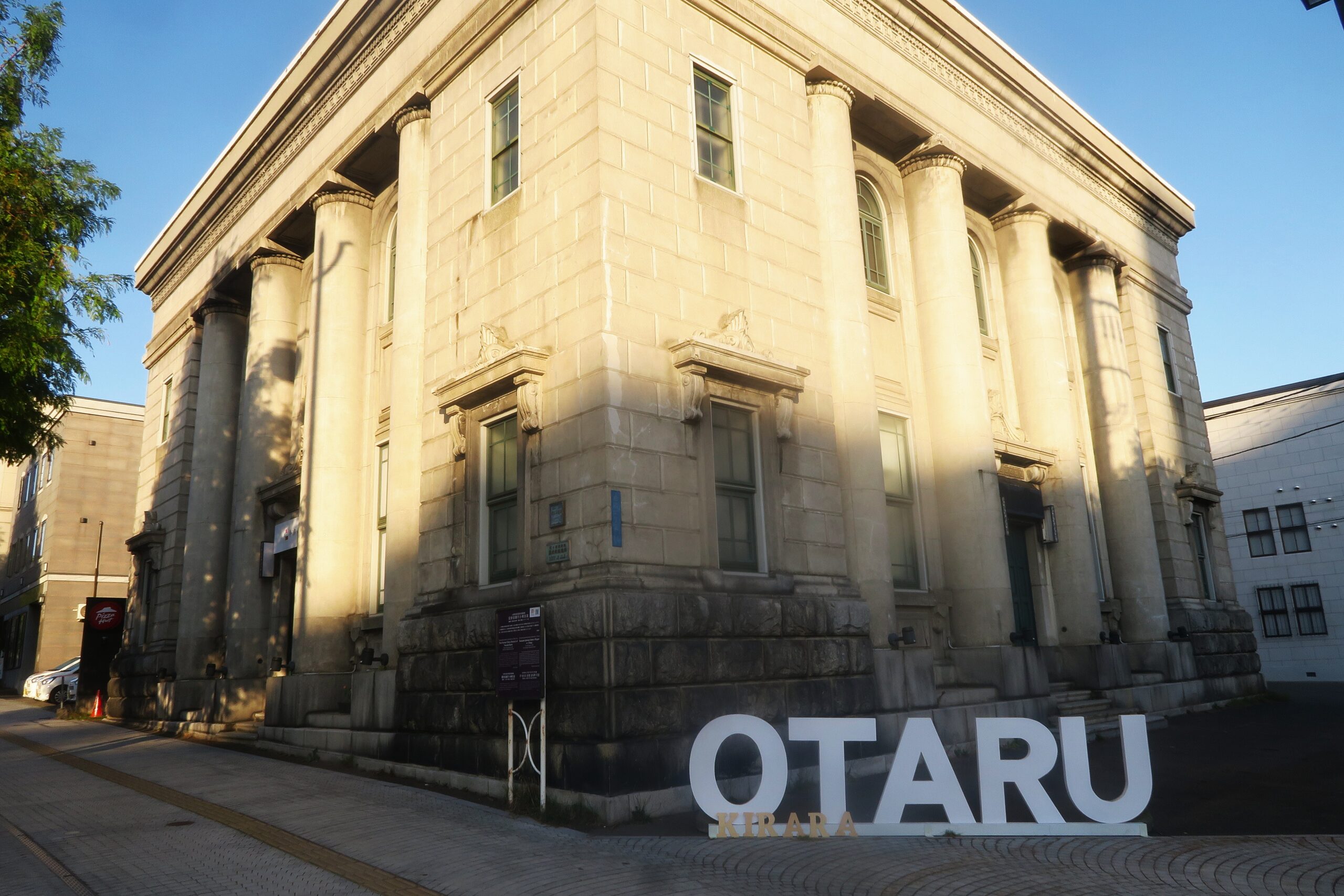 旧安田銀行小樽支店は、第2次世界大戦後、富士銀行が継承した後、昭和45年(1970)から新聞社の家屋となりました。ギリシャの建築様式をもった昭和5年(1930)築の典型的な銀行建築で、重量感あふれる円柱が特徴です。中央通りの道路拡幅に伴い平成13年(2001)に建物が斜め後方に約11m曳家され、同時に外観も修復されています。