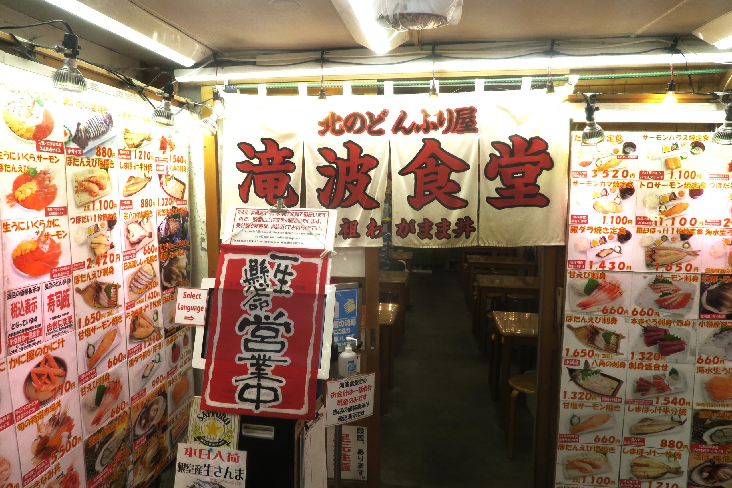 海の発達した小樽には21の市場があります。その中でも小樽駅のすぐ左側に位置しアクセス抜群の市場が、昭和32年(1957)から変わることなく続いている三角市場です。市場内にある北のどんぶり屋 滝波食堂で朝から海鮮丼を食す。