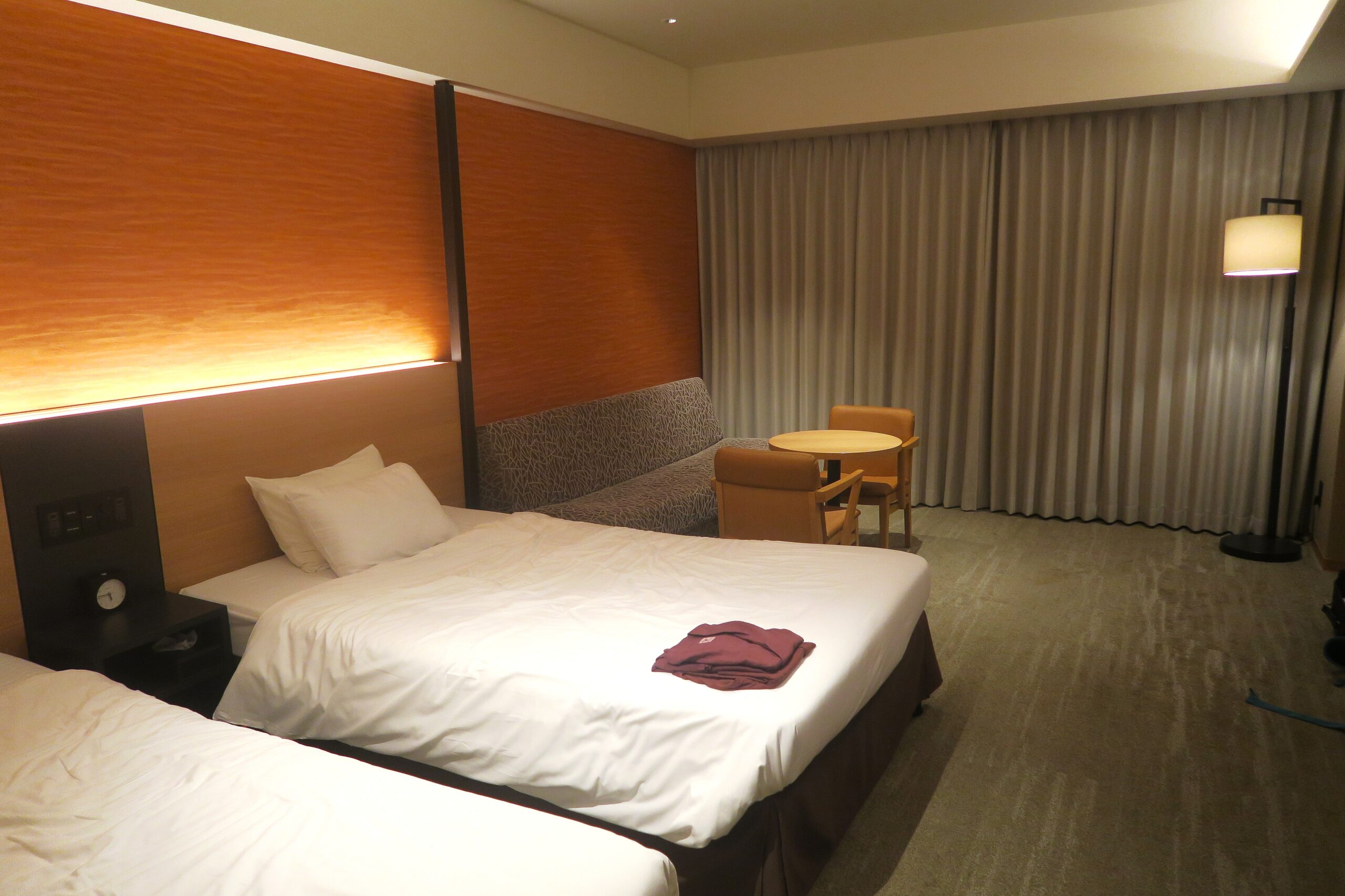 客室は今回津軽海峡を間近に過ごせるスタンダードツイン。シングルベッドを2台備え、窓際にはソファを配し、ゆったり腰掛けながら海の眺望が楽しめます。