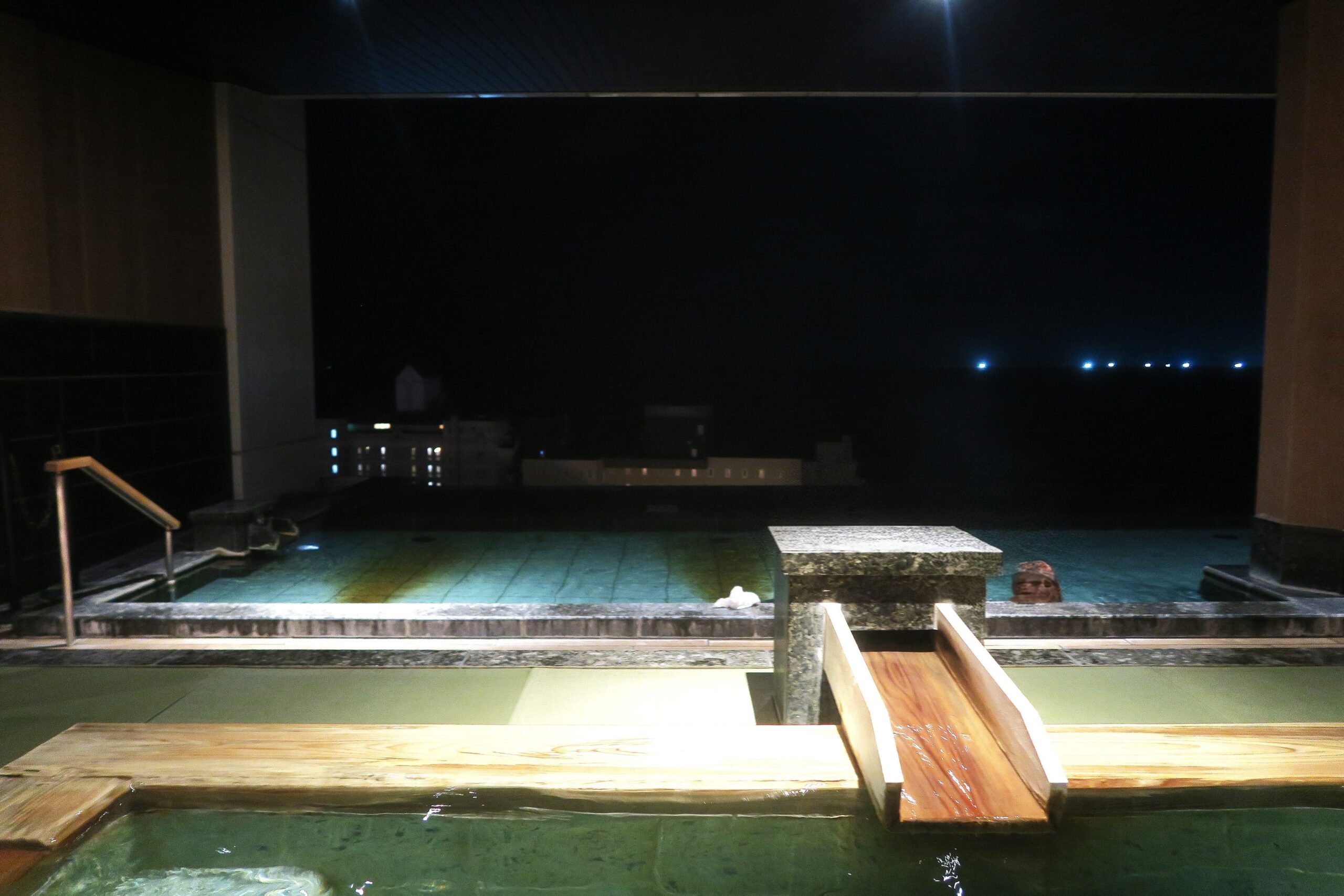 最上階12階に位置する大浴場「天海amaumi」は、津軽海峡を見渡すインフィニティ風呂「古の無限海灯露天風呂」に畳風呂、壷湯が楽しめる温泉リゾート。見晴らしが良く、凪の音が聴こえてくるほどに目前に津軽海峡が広がります。左手には函館山が望め、温泉のぬくもりを感じながら、水平線を眺める至福のひとときが堪能できます。