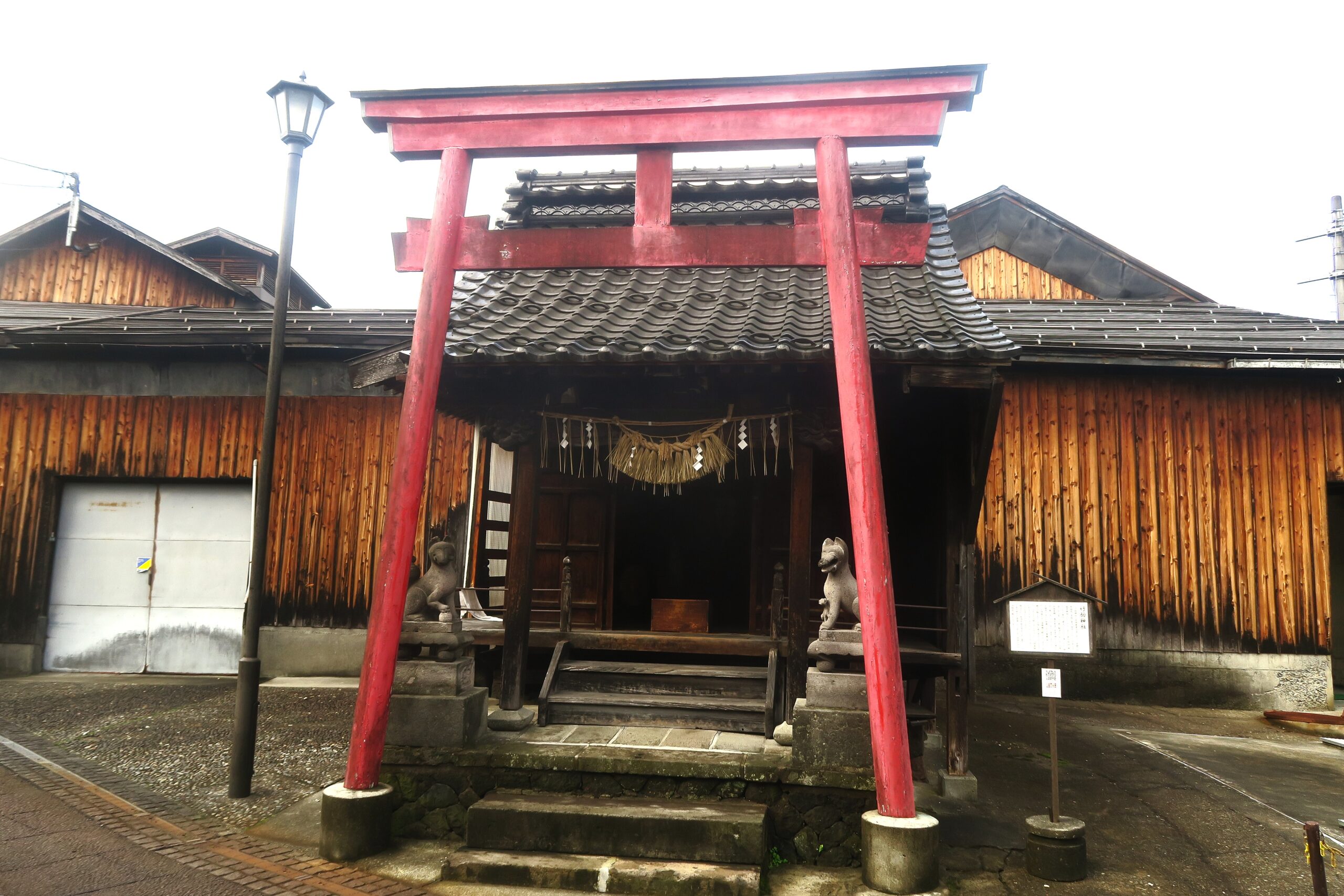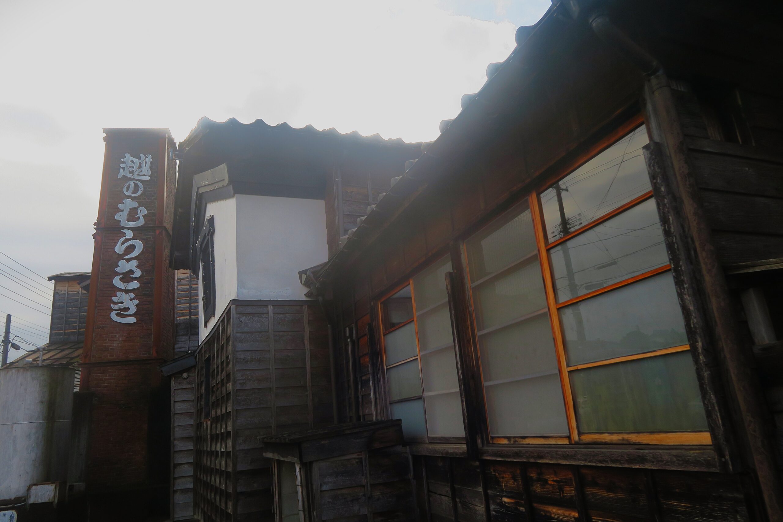 越のむらさきの社屋は明治10年(1877)の施工で軒高の低い町家形式を良く残し、傍らの小ぶりの土蔵と共に国の登録有形文化財に指定されていますが、その前に立つと、旧三国街道側に建つ土蔵群から醸し出される香ばしい醤油の匂い、麹菌で黒ずんだ竹駒稲荷が迎えてくれます。