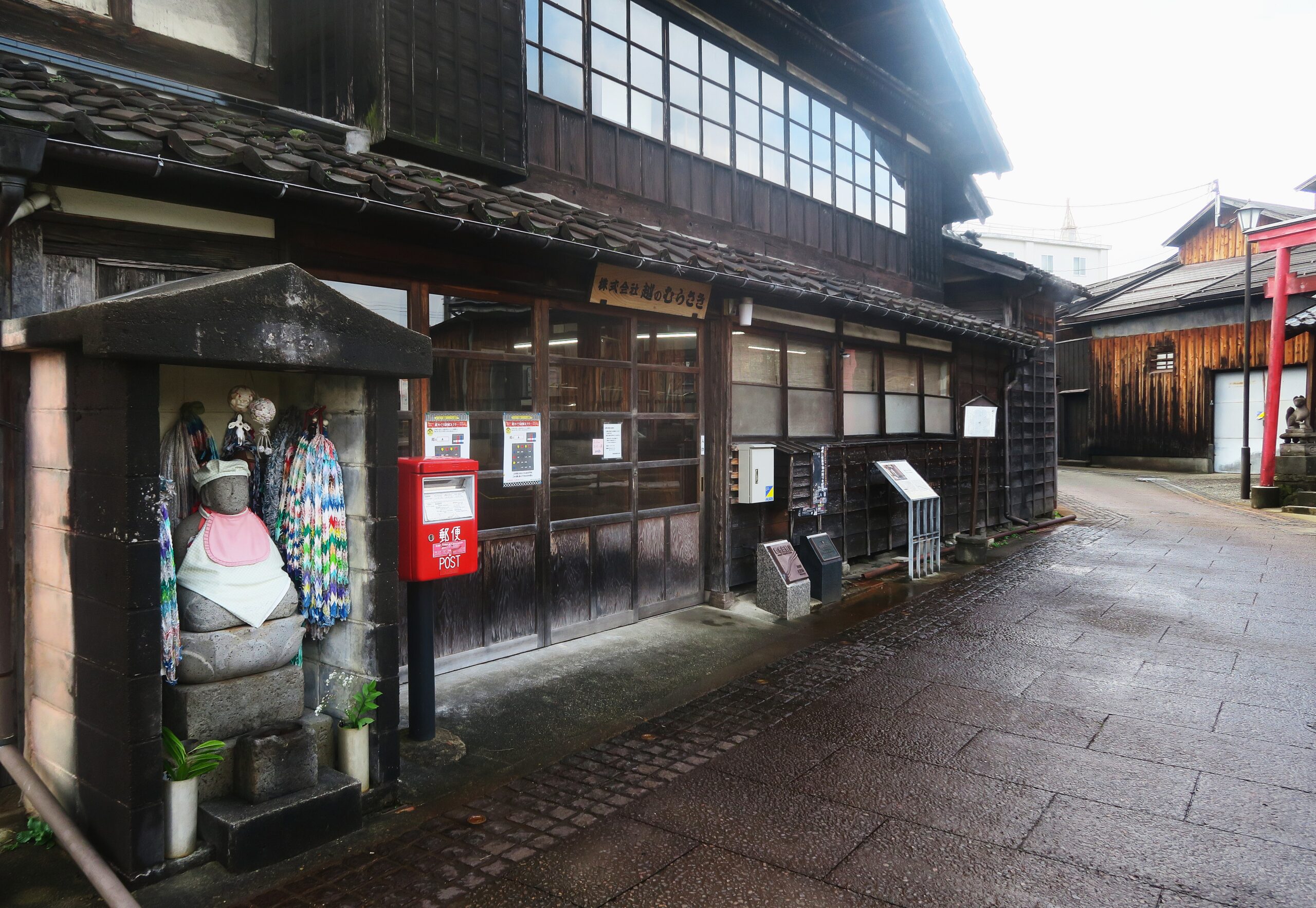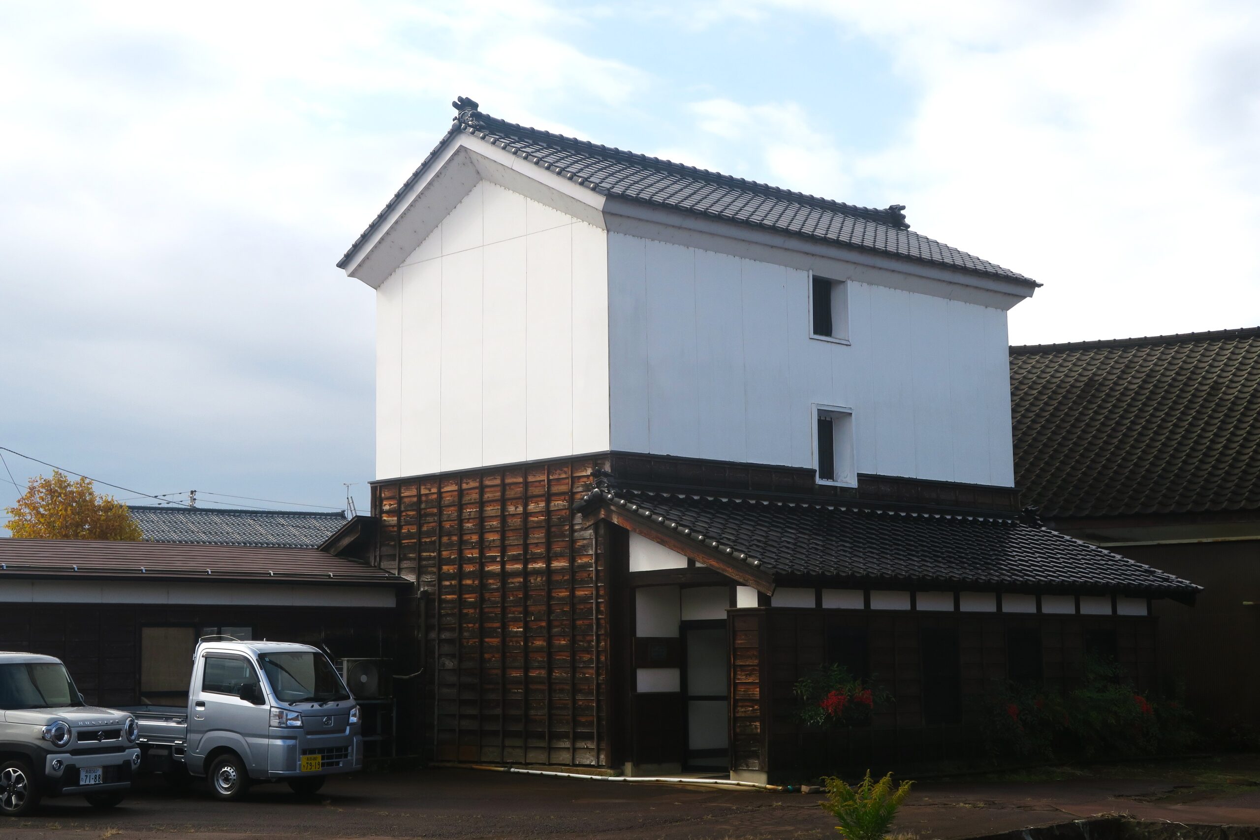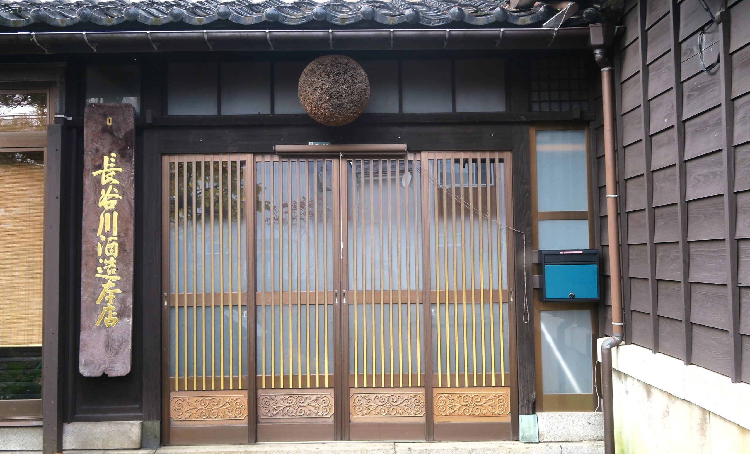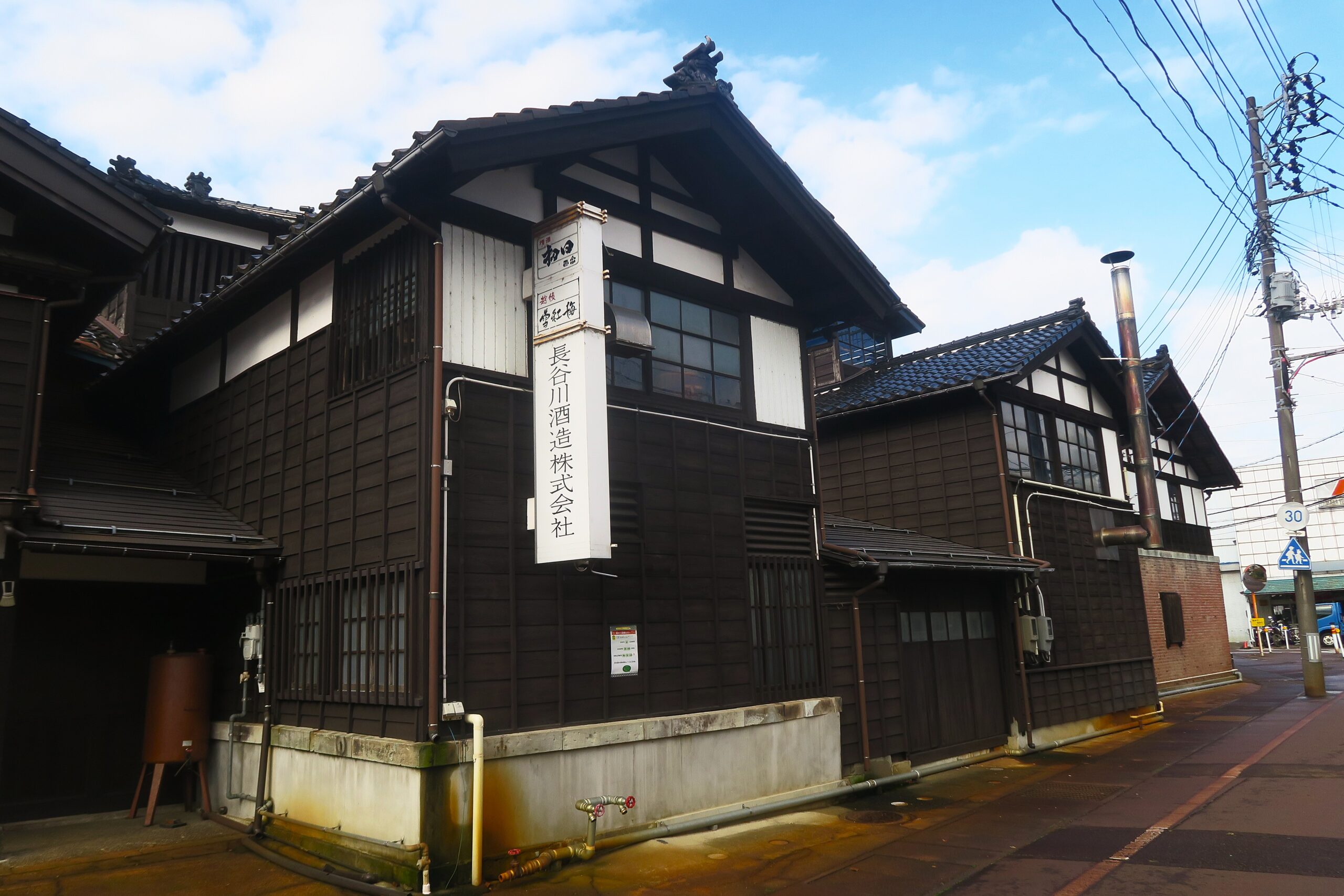 星野本店のすぐ先にあるのが、天保13年(1842)に初代の重吉が創業した江戸時代から続く老舗の「長谷川酒造」。信濃川の伏流水を水源とする超軟水で仕込むお酒は、米の旨味を感じさせつつ、あと味すっきり。昭和の大作曲家・遠藤実がここの酒を愛していたそうで、彼が命名したという「雪紅梅」は、この蔵の代表銘柄です。明治19年(1886)建築(大正13年改修)という母屋が登録有形文化財に指定され、出雲崎山谷の久賀権治郎の手によるものです。玄関には杉玉が吊るされ、店名が筆文字で書かれた看板が掲げられた由緒正しい造り。