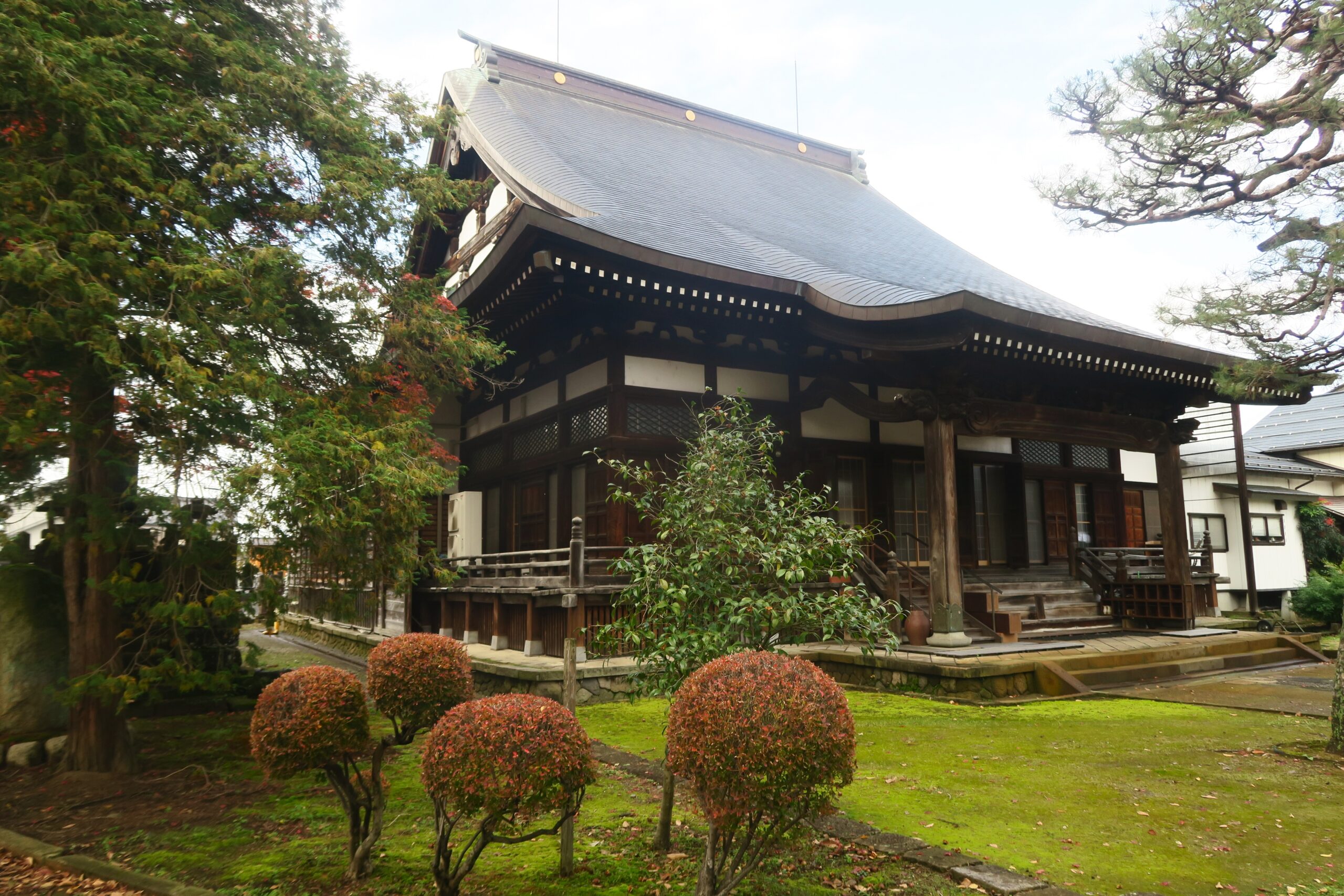 駅に戻る途中、戊辰戦争で長岡藩が本陣にした光福寺に寄っていきます。浄土真宗本願寺派の青木山光福寺は、開基が明応年中(1492~1501)とする古刹です。上杉家の武将本庄氏が帰依し、もと柿村の青木山にありましたが寛文4年(1664)に摂田屋に移り、元禄12年(1699)長岡3代藩主牧野忠辰の参詣を受けています。戊辰戦争時にはここに最新鋭のガトリンク砲と様式武双した藩兵が配置されました。敷地内に石碑が建てられ、意に反して戊辰戦争に巻き込まれてしまう家老・河井継之助の無念を偲ぶという趣旨の文章が胸を熱くし、2022年6月公開の映画「峠 最後のサムライ」を思い出します。