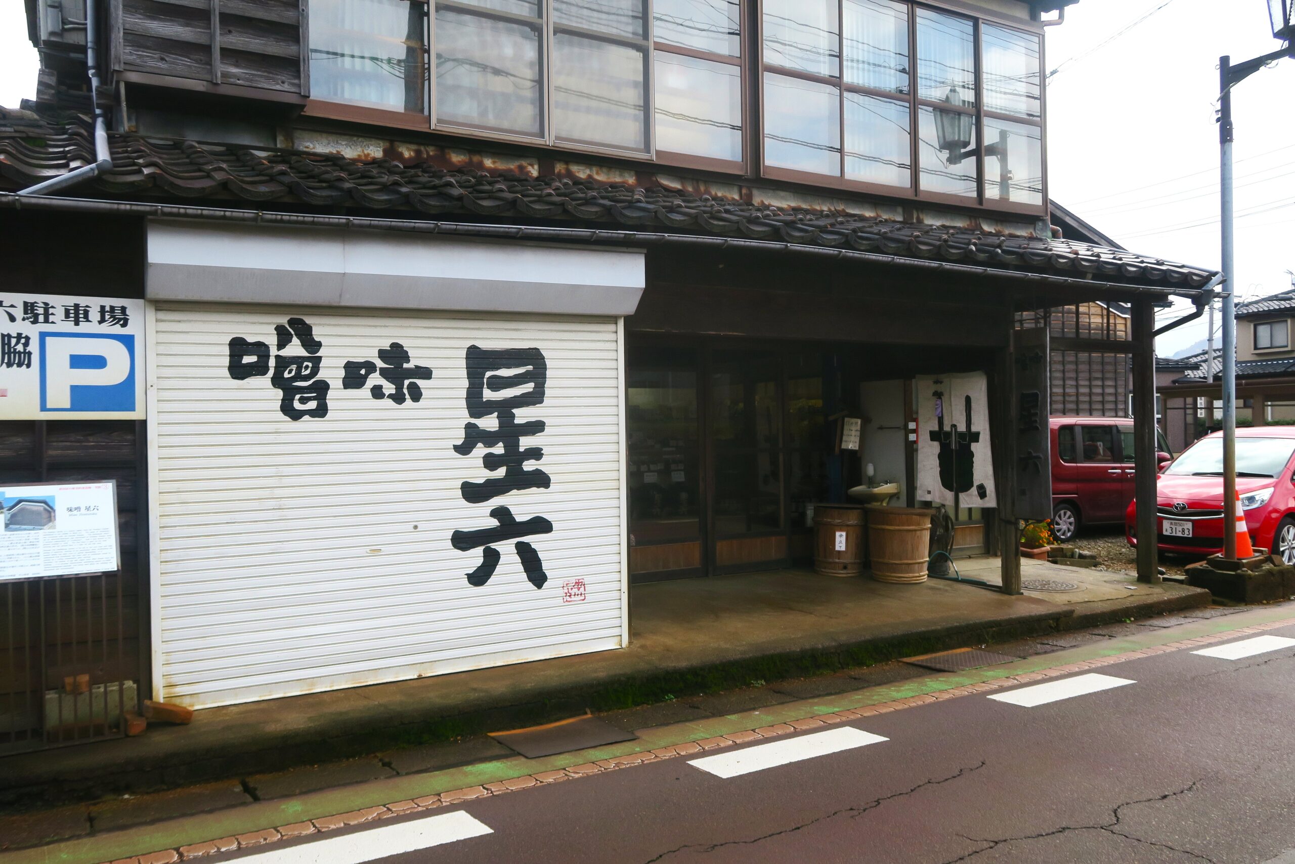 さらに進むと、左手にあるのが昭和50年(1975)、創業者の三代目星野正夫さんが、分家した初代星野六郎さんが定めた屋号“星六”を掲げて創業したのが「味噌星六」。洋画家の中川一郎氏が描いた店名が目印の大正7年(1918)築の建物は趣があります。グルメブームをけん引した漫画『美味しんぼ』16巻「飯の友」編で紹介された名店です。昔ながらの天然醸造と国産の無添加・無農薬原料にこだわり、ここの土蔵も明治中期に建てられたもので、今も味噌造りに使われています。