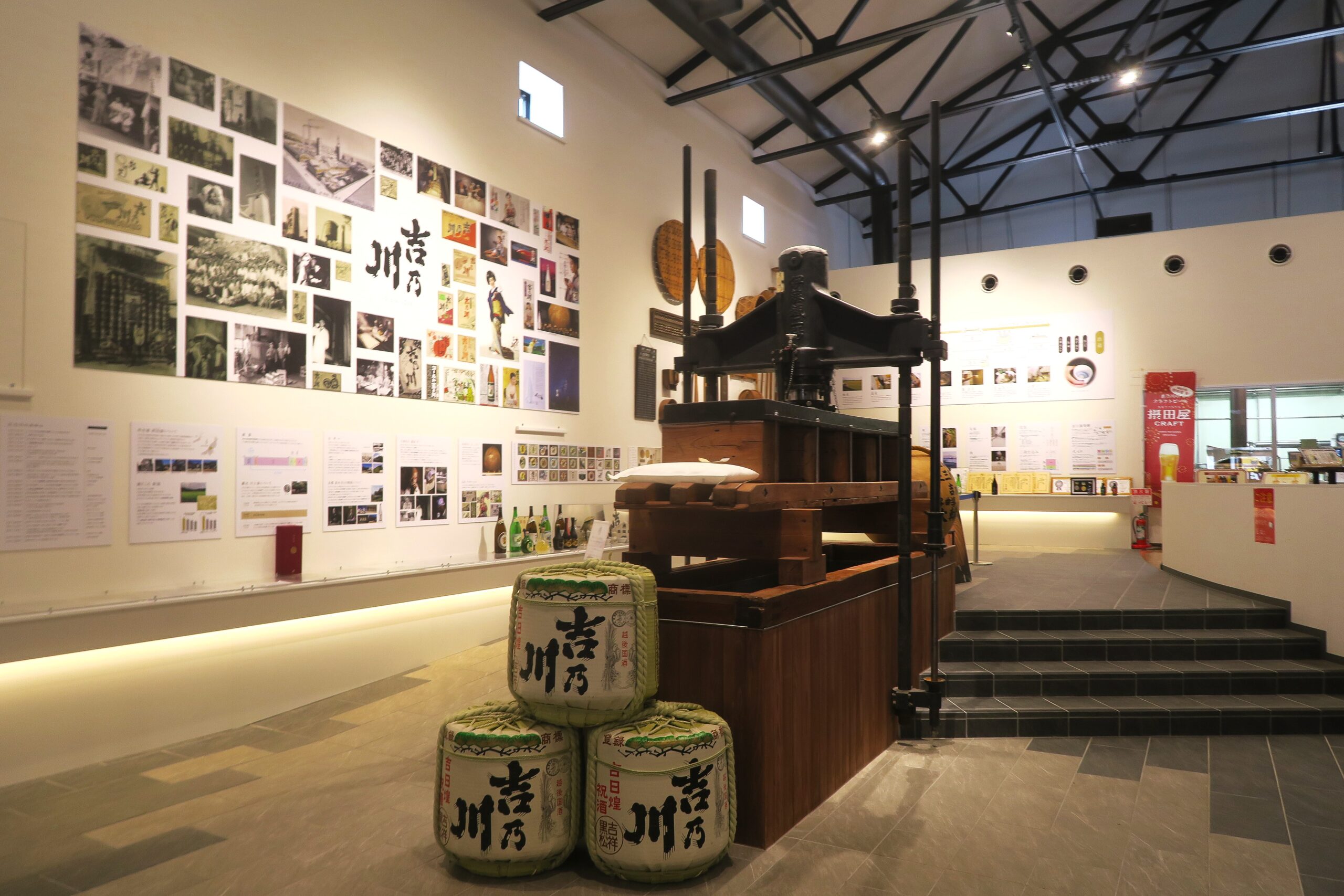 酒ミュージアム「醸蔵」は、「知って、飲んで、買える」をコンセプトに、館内には5つのコーナーがあります。①吉乃川の歴史、酒造り、摂田屋の歴史を知る「展示コーナー」②酒蔵でしか飲めない特別なお酒や人気の飲み比べセット等を楽しめる「SAKEバー」。地元企業とコラボしたつまみもあります。③売店④醸造内で醸造される吉乃川のクラフトビール「摂田屋クラフト」⑤酒造り体験ゲームがあります。