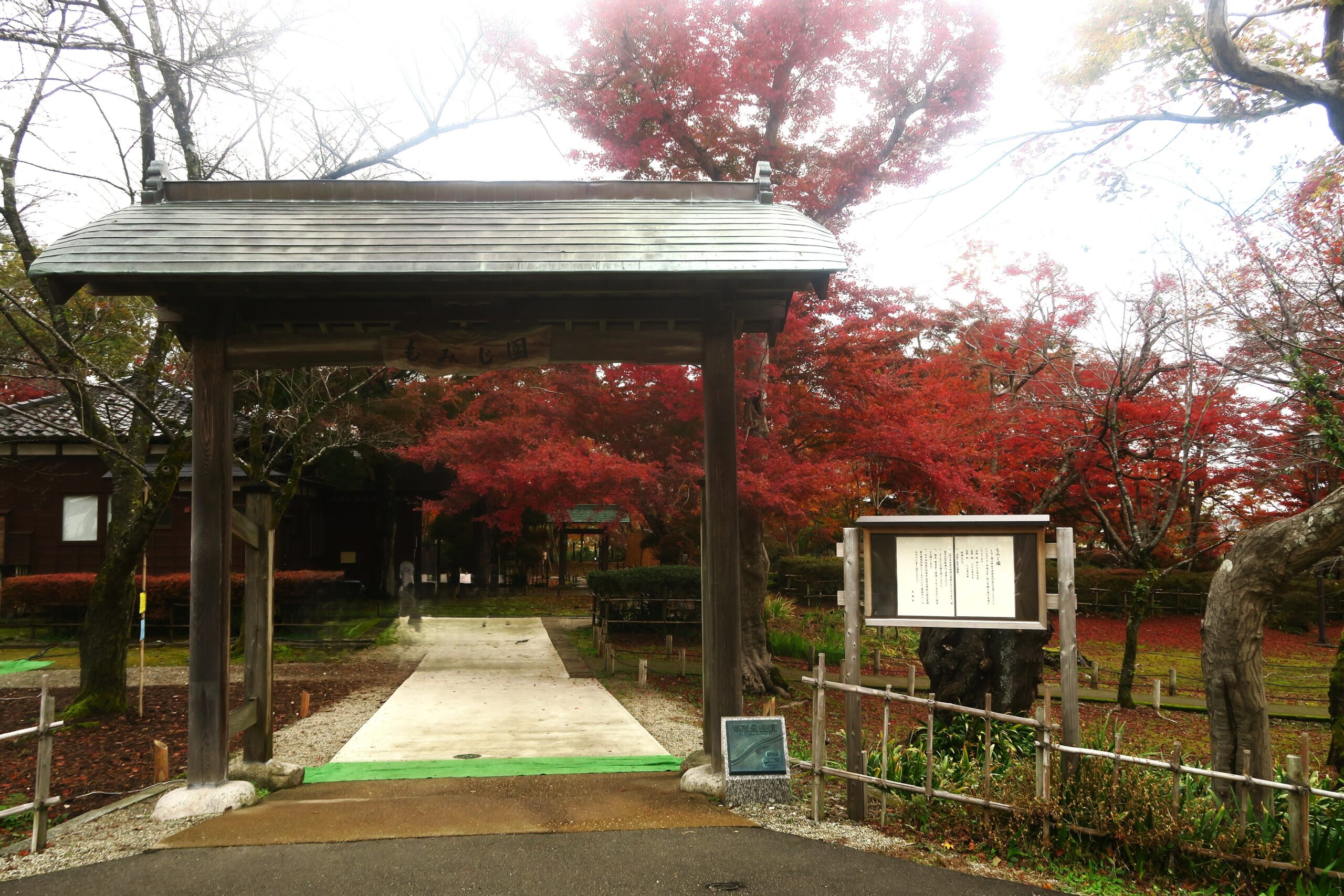 宮内駅から信越本線で2駅目の来迎寺駅で下車し、駅から徒歩で10分程度のところにある「越路の庭 もみじ園」へ向かいます。