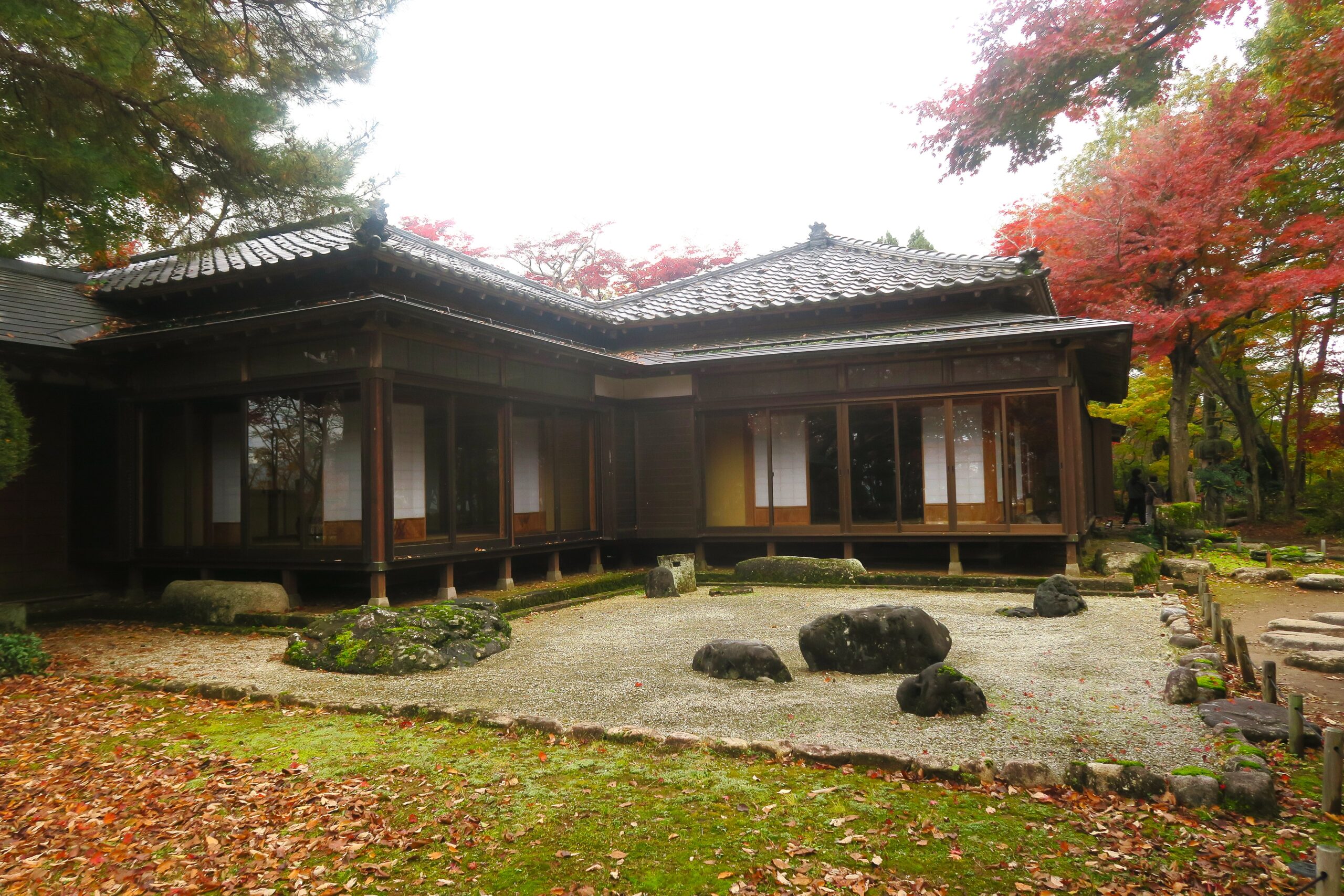 建物は明治(1896)頃に建てられた木造平屋建、瓦葺の開放的な近代和風住居。高橋家がお客様を招く茶室として建てたもので寄棟造の座敷棟二棟を矩折に繋いだ平面を持ち、東棟に東面する玄関を構えます。西棟は良材を用いて大床を構えた15畳最大の座敷を中心としています。
