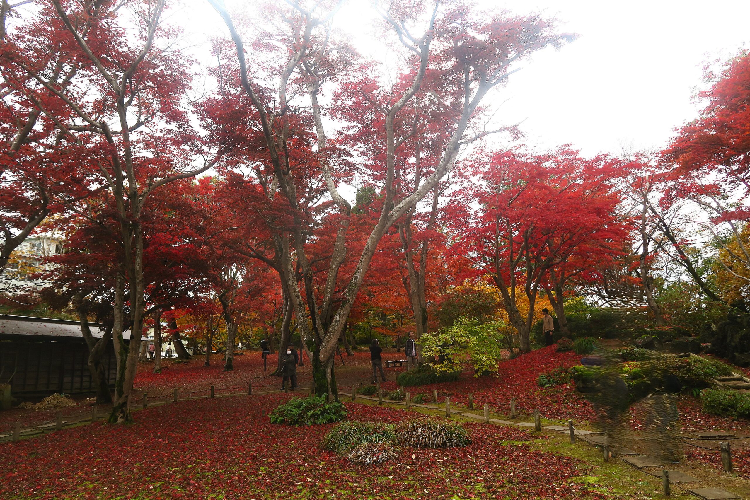 回遊庭園である約4000㎡の敷地内には、樹齢150年~200年のもみじや山桜、ツツジなどの植物が植えられています。最も多く植えられているイロハモミジは北から九州地方の太平洋側に野生するもみじの一種で、高橋家が事業の活動の場であった京都から優れた5品種を移植したものと思われます。