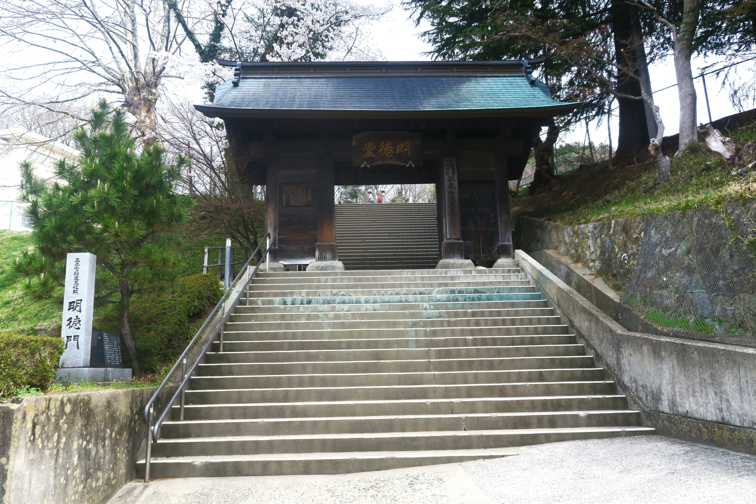 藩主は西麓(現三春小学校の場所)に屋敷を構え、そこで政治を行っていました。写真は安永年間、7代藩主秋田倩季により、藩士子弟の教育を目的として設けられた藩講所の表門で、倩季の筆による明徳堂の扁額を掲げていることから明徳門と呼ばれています。戦後、歴史民俗資料館下の駐車場から追手門があった三春小学校入口に移され、小学校の校門として親しまれています。