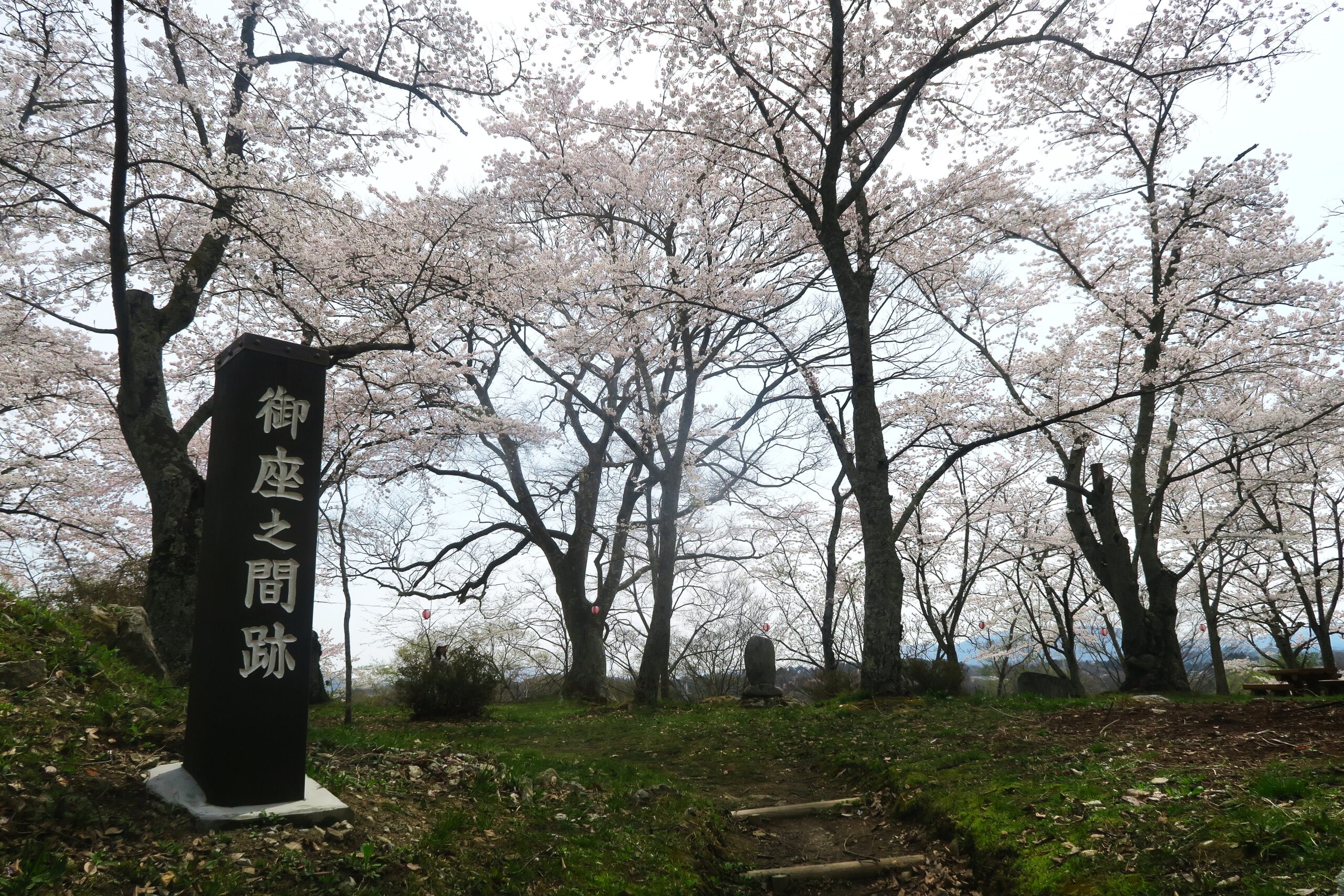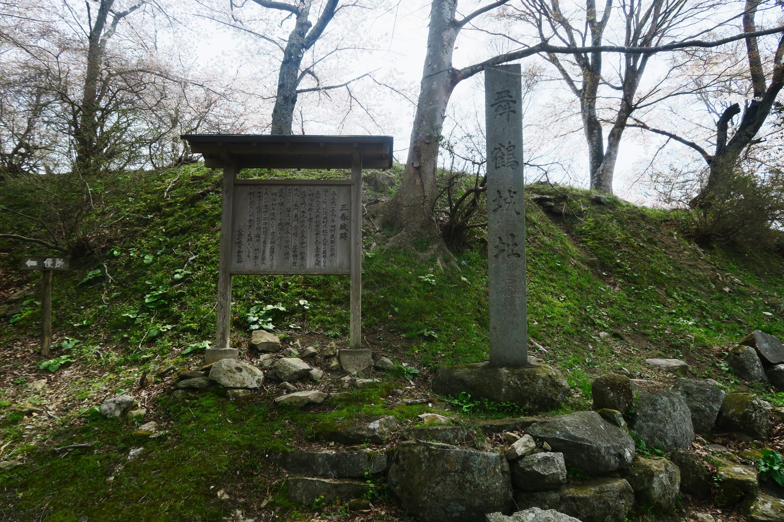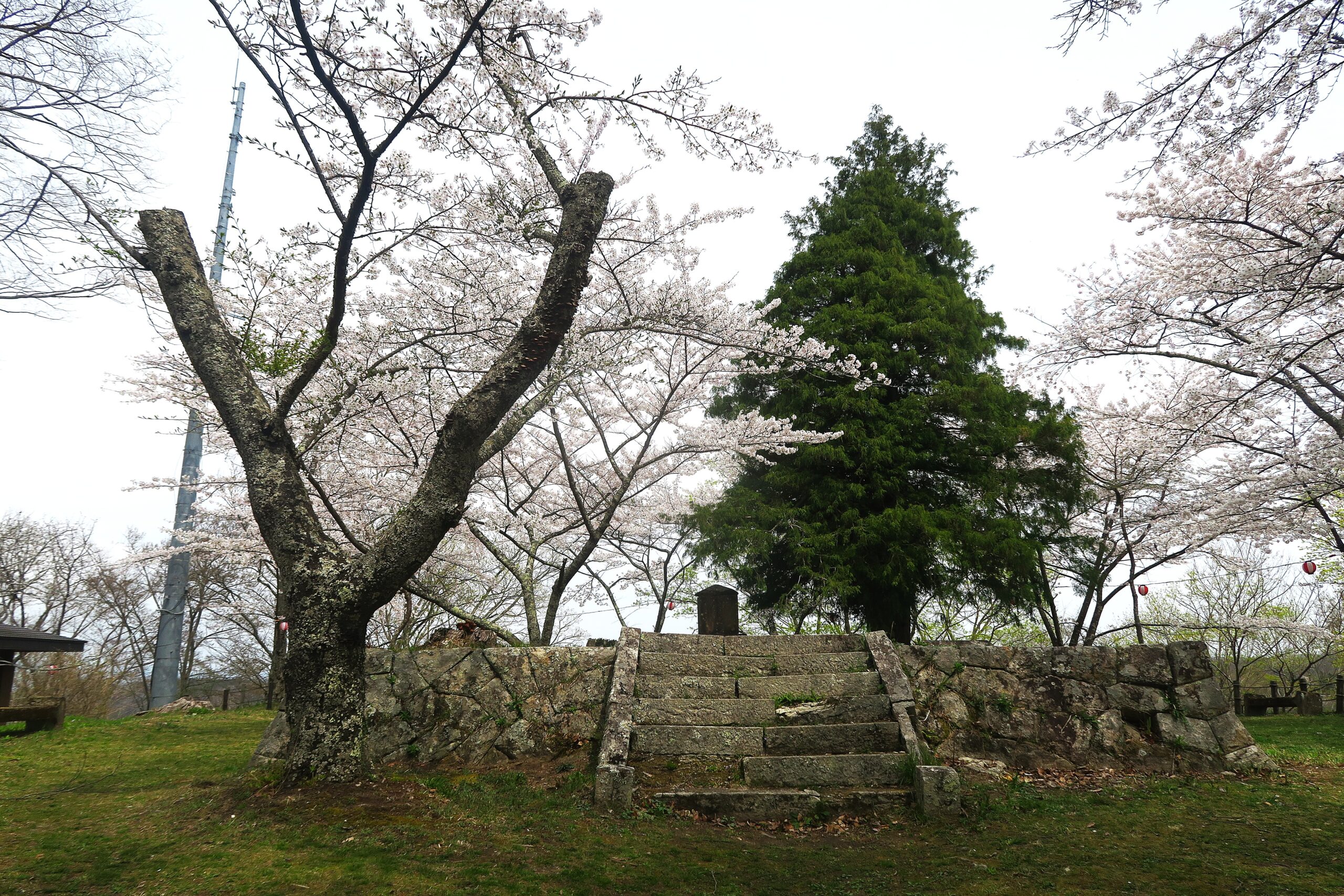 三春城は永正元年(1504)に田村地方を治めた戦国大名・田村義顕が、三春町の中心部の大志多山に築き、その美しい姿から舞鶴城とも呼ばれました。面積は約20万㎡で、麓から約200mの最高所に、標高407.5mの四等三角点があります。このうち、本丸や二の丸、三の丸だある中腹以上の約39500㎡が町の史跡に指定されており、また続日本100名城に選定されています。田村氏は義顕・隆顕・清顕と三代続きますが、天正14年(1586)の清顕が急死し、一人娘の夫である伊達政宗を後見に甥の宗顕が城主となり、政宗の南奥羽制覇を支えました。この間、城の周囲にたくさんの堀や土塁、石積みを築いて、仙道を代表する城砦となりました。写真は、本丸手前の二の丸の城址碑と説明板