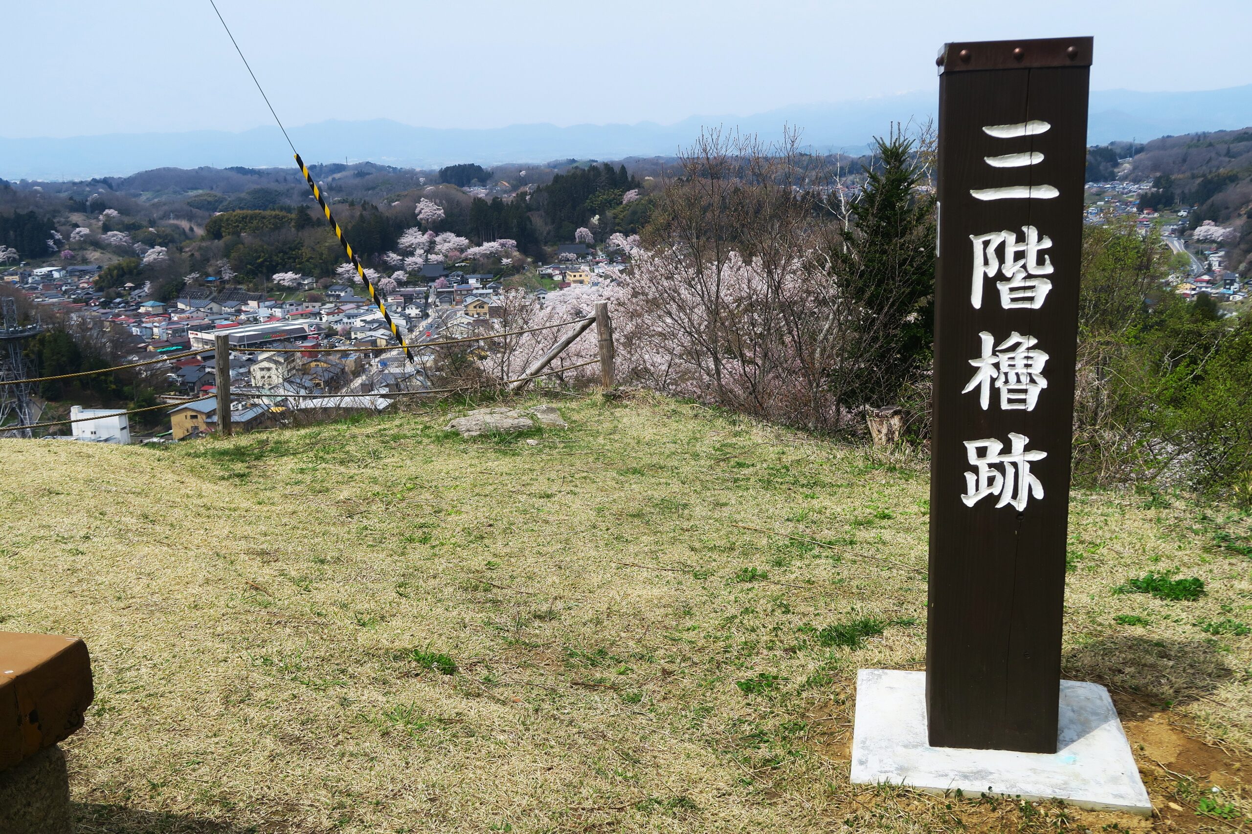 下の段には、天守に準ずる三階櫓と両脇に石垣を配した櫓門の表門、多門櫓状の長屋から連なる石垣の上に架した渡櫓門の裏門といった大型の建築物が平場の縁を巡るように建てられ、城下からは豪壮な城を仰ぎ見ることができたと推測されます。戦国時代は上段が本丸、下段が二の丸でした。本丸西端の高い断崖の上に建つ三階櫓は、各層の屋根の向きを互い違いに重ね上げた高さ12.7mの望楼型の美しい三層の櫓であったと推測され、三階櫓跡のところからは、三春市街地を見渡すことが出来ます。
