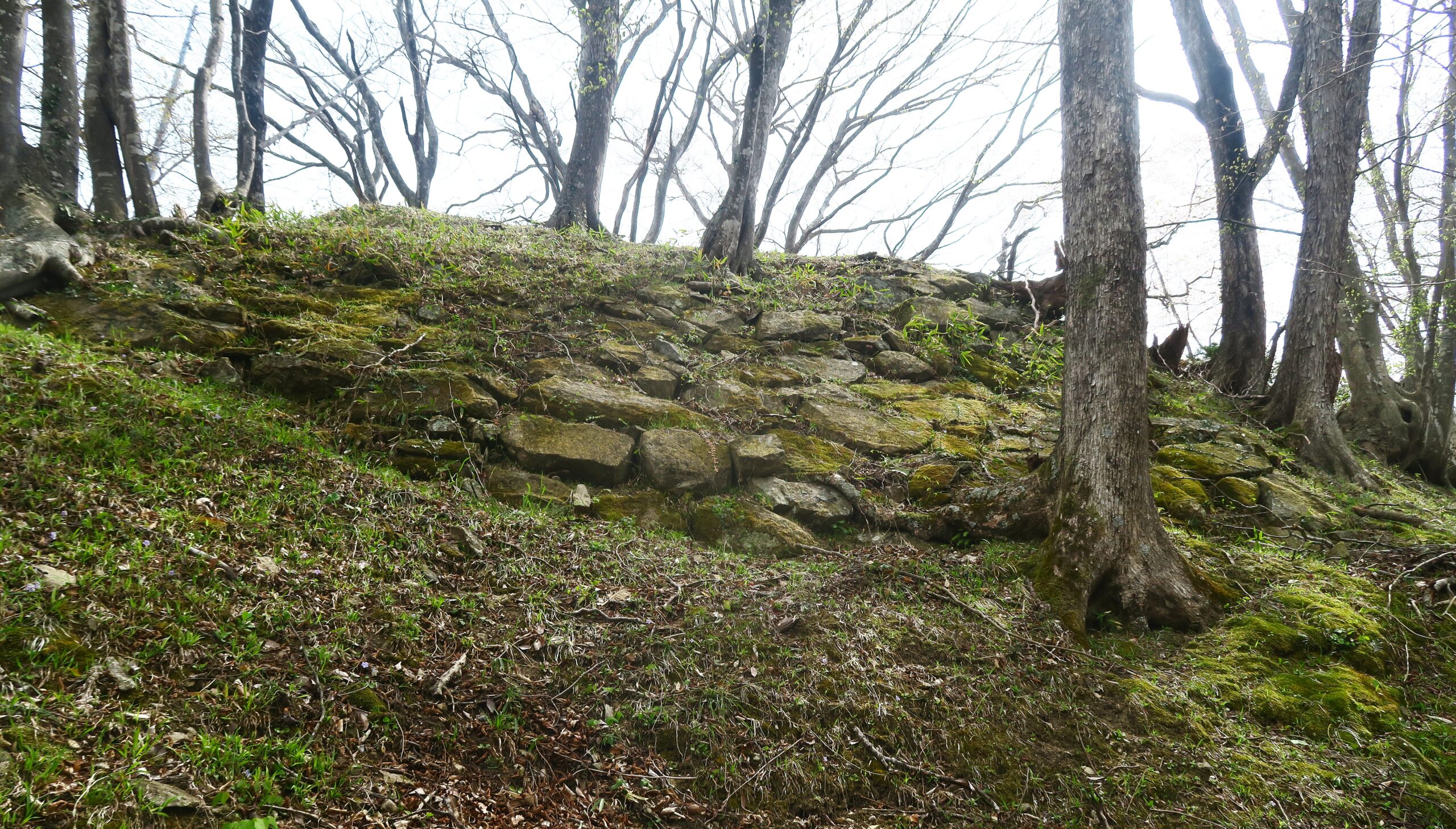 本丸の裏門跡外そばに残る石垣は会津藩主蒲生領時代に積まれたと考えられる石垣。