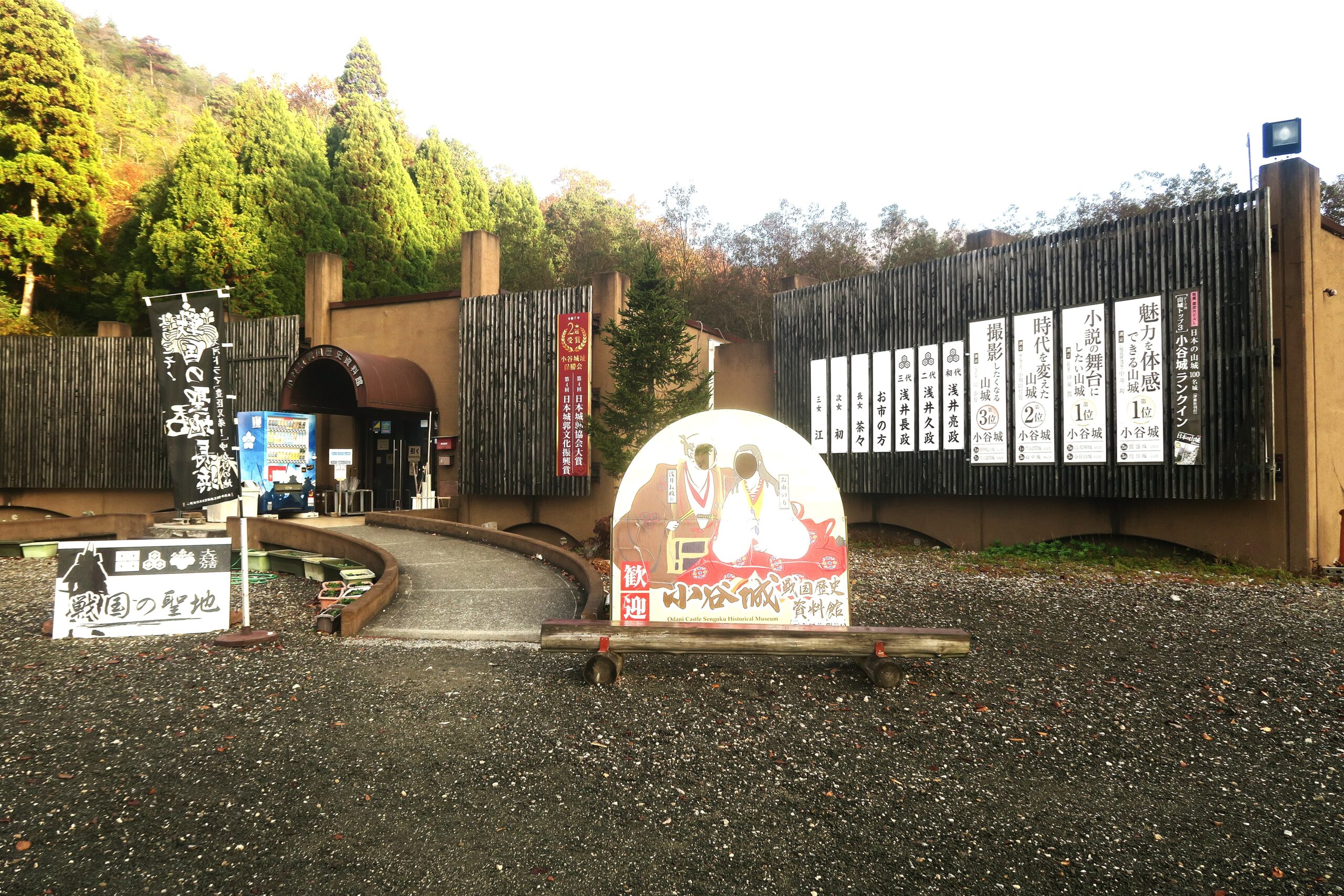 今回は山麓の清水谷の入口にある小谷城戦国歴史資料館に車を停めてます。ここでは、小谷城にまつわる貴重な資料や、浅井長政・お市の方・三姉妹に関する展示が充実していて、歴史をしっかり学んだ後、登山装備を整えていざ、戦国の舞台へスタートです。